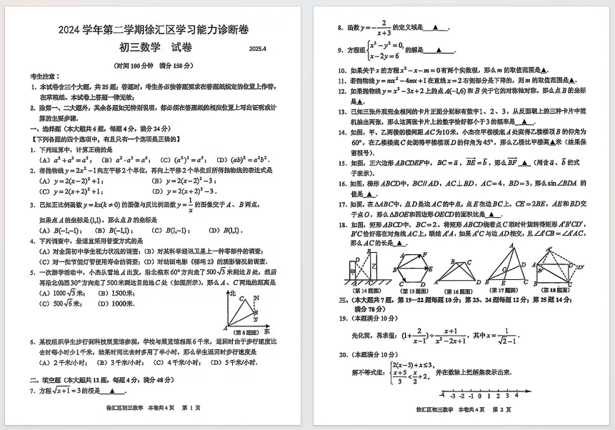 下面我整理了,2025年上海各区初三二模数学试卷+答案 ,供大家参考学习。文末或私信可领取~