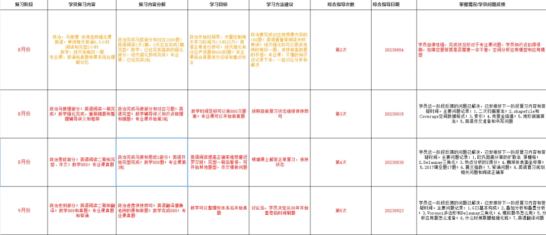 针对学员情况制定专属复习计划。明确目标,聚焦重点;合理分配时间,优化学习节奏;跟踪进度,及时调整策略;增强自律,培养良好学习习惯。