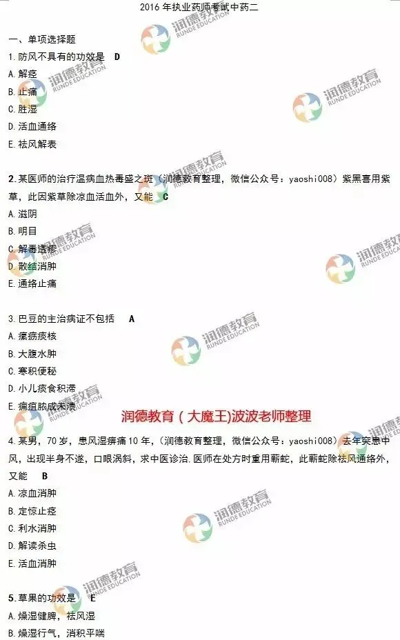“ 2016年执业药师考试正式结束,你是否完成了自己当初的梦想?无论结果怎样,此刻都已不重要。润德教育也在第一时间把全科真题答案整理了出来,时间关系,综合科目的答案暂时只在朋友圈公布,需要答案可私信润德教育的任何一个老师,或者在后台回复“答案”2个字。