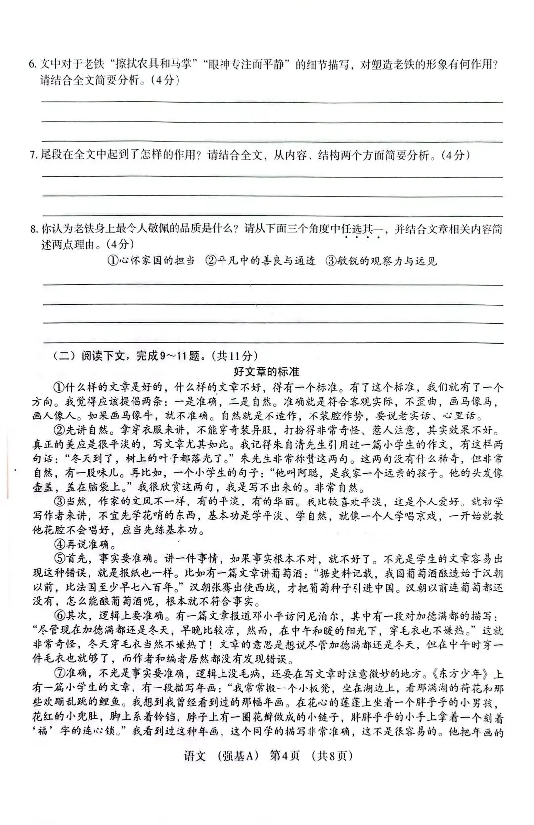 阅读板块:选取叙事文《铁匠老铁》、议论文《好文章的标准》,搭配经典文言文与两首古诗,侧重考查人物分析、文本理解、写作逻辑,题型难度从基础到拔高循序渐进,练题效果拉满。