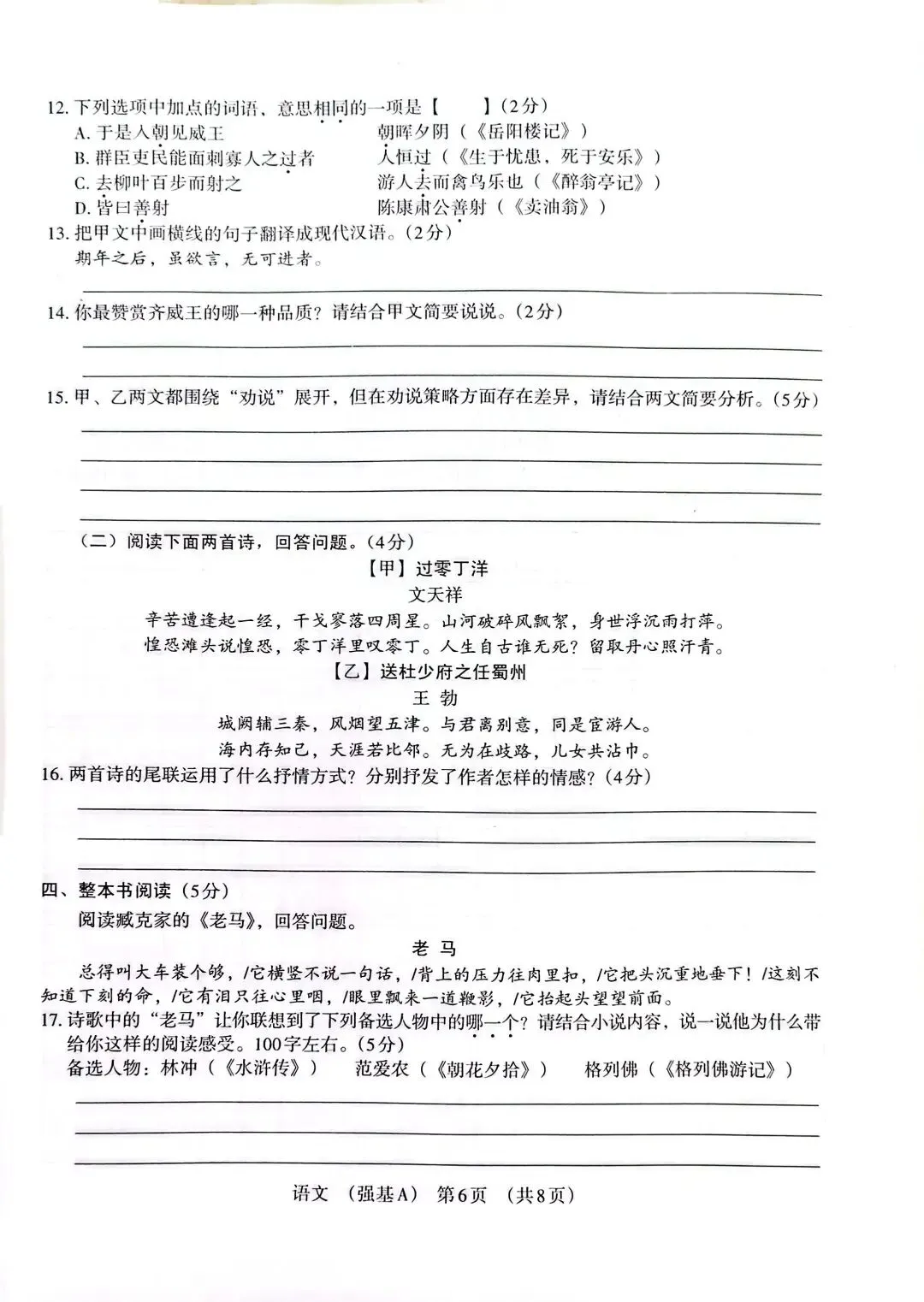 整本书阅读:以臧克家《老马》为素材,联动多部名著,引导学生结合文本谈感受,避免名著阅读“走过场”,精准对接中考考查方向。