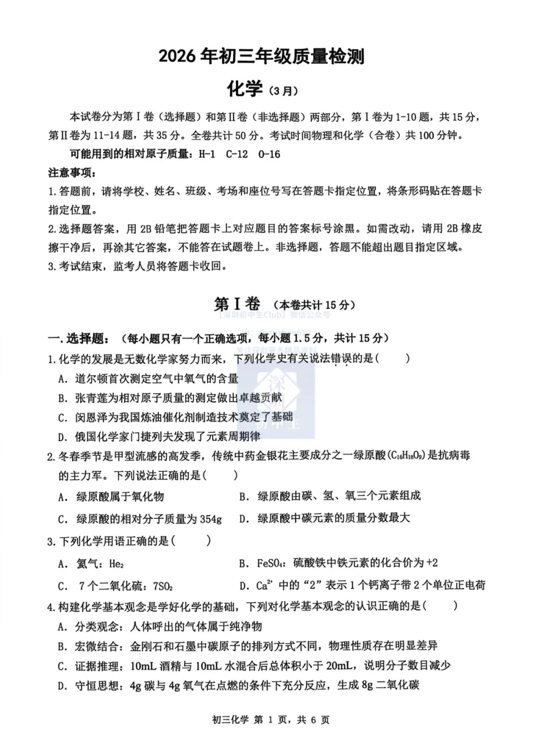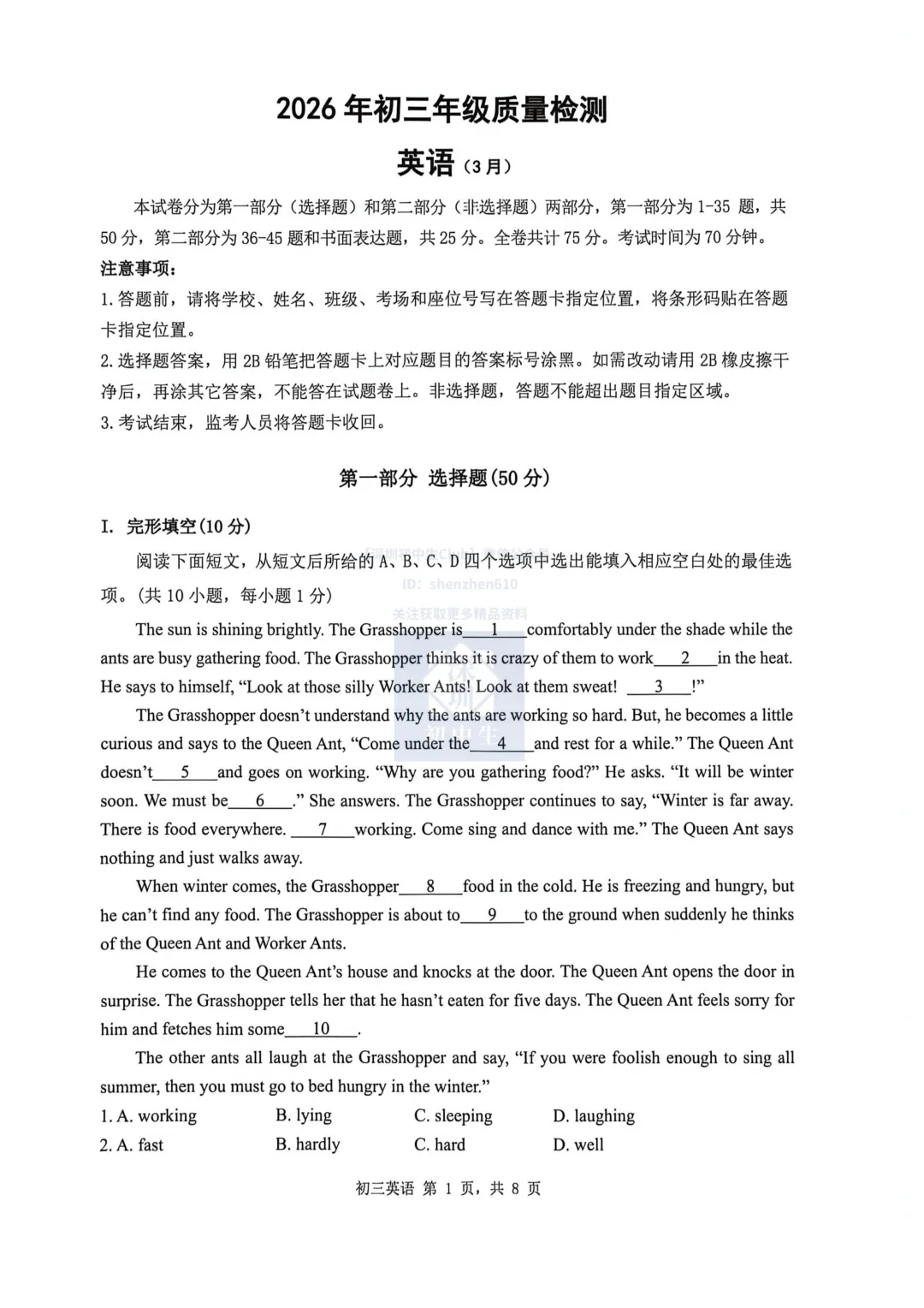 我们整理了2026年3月10日、11日,深圳市初三下学期34校联考7科试卷及参考答案,pdf版本可下载打印后练习!