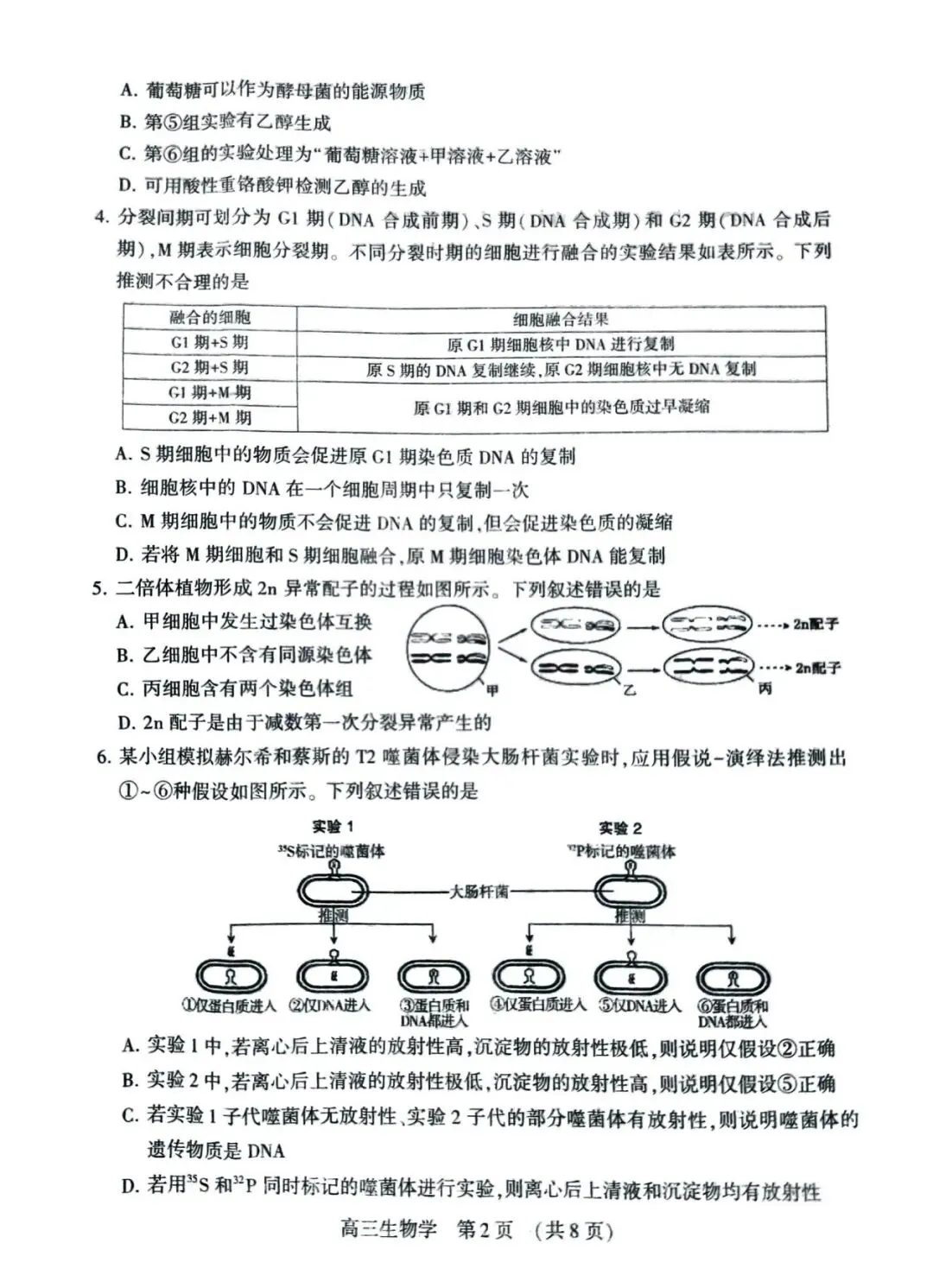 2026年甘肃省高三一诊试卷及答案,免费下载