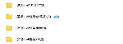 优弗耗时半个月,整理了AP全科目备考宝藏资料包,帮所有AP备考党省去搜集资料的麻烦,集中精力高效冲5分!资料覆盖所有热门AP科目,从真题到教材、从笔记到公式,一站式搞定AP备考所有需求,直接上手就能用!