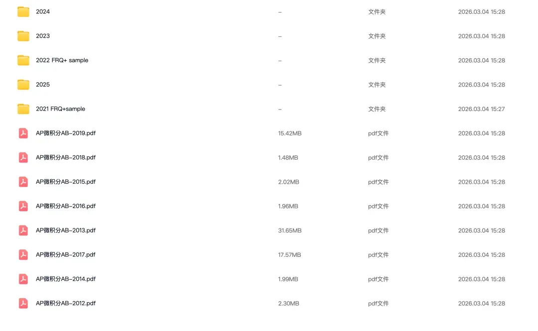 包含40门AP科目历年真题汇总,全部都是更新到2025年版本,涵盖(微积分AB/BC、统计学、经济学、物理1/2/C、化学、生物、心理学、计算机科学A、人文地理等,每一套真题都附带详细解析)