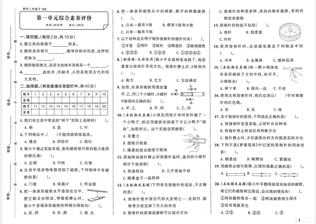 >【可下载】2026年春新大象版科学三年级下册第一单元综合素养