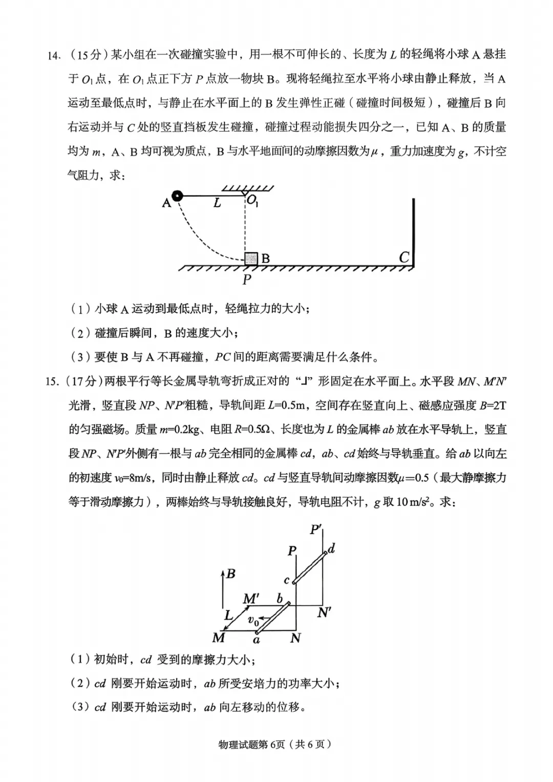 2026届重庆一中高三3月月考物理试卷及答案