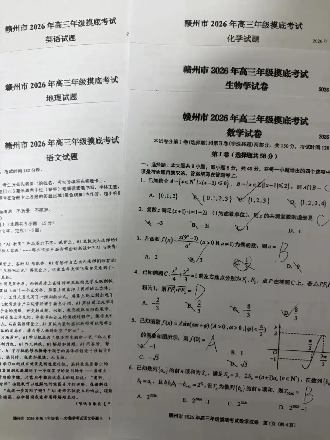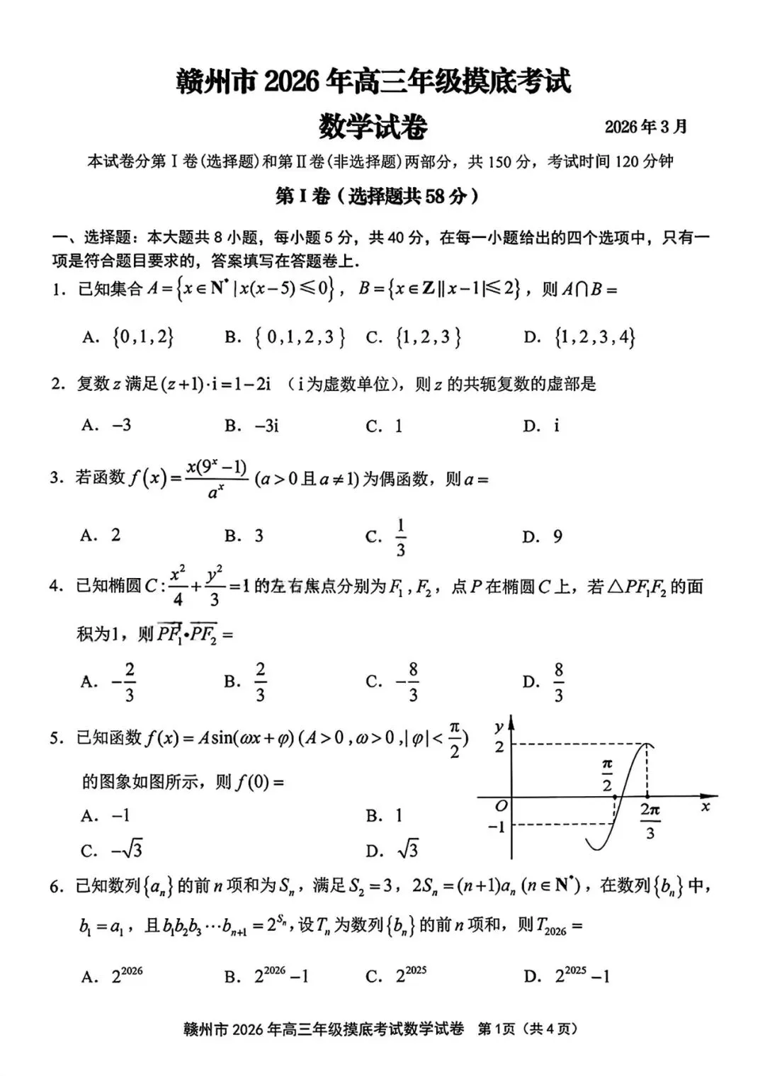 考试名称:赣州一模赣州市2026届高三年级摸底考试