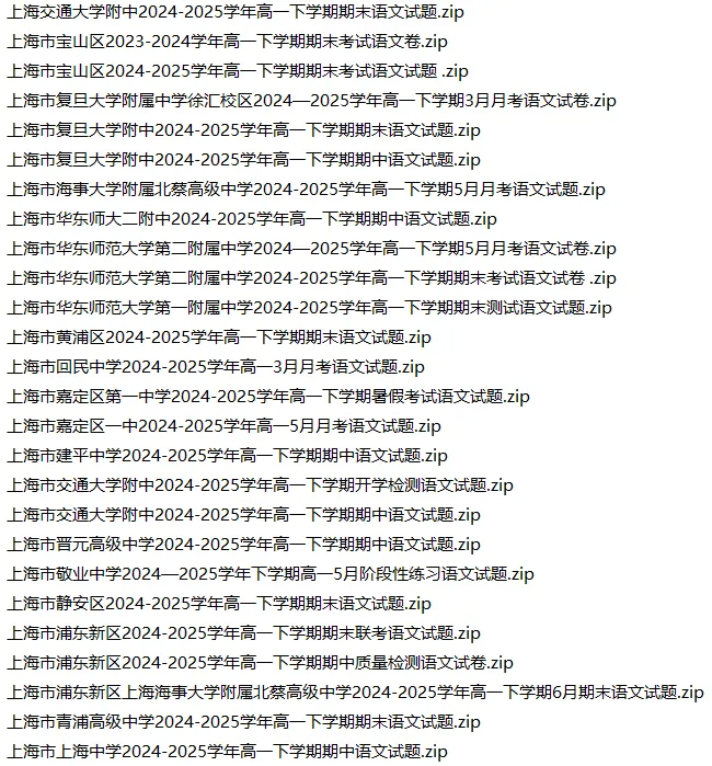 >新购上海6789高一年级第二学期各科试卷汇总目录(3.12更新),需要免费领取可以私信我!