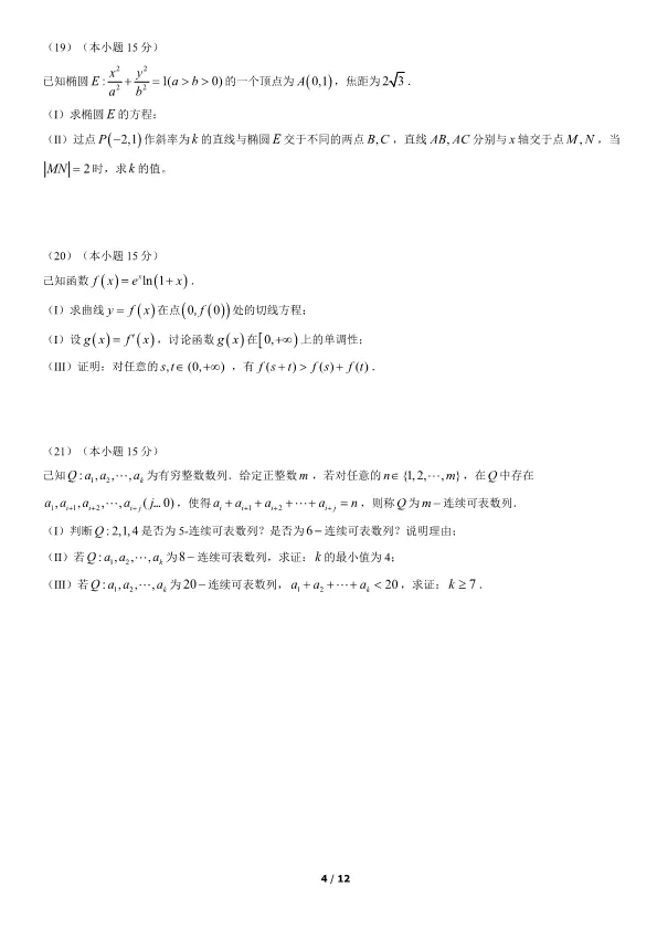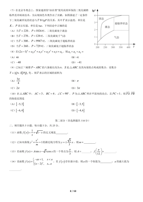 2022北京高考数学真题数学(有答案) 电子版试卷获取,后台回复:试卷