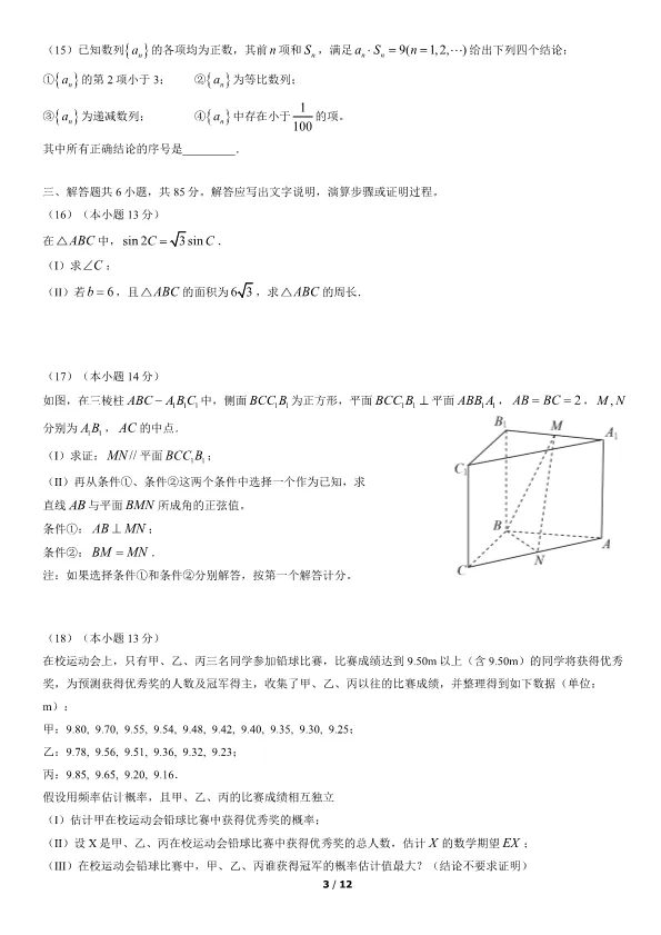 >2022北京高考数学真题数学(有答案)【可下载】