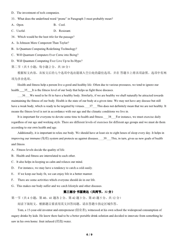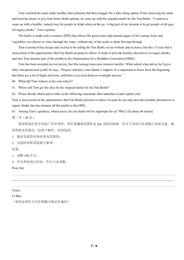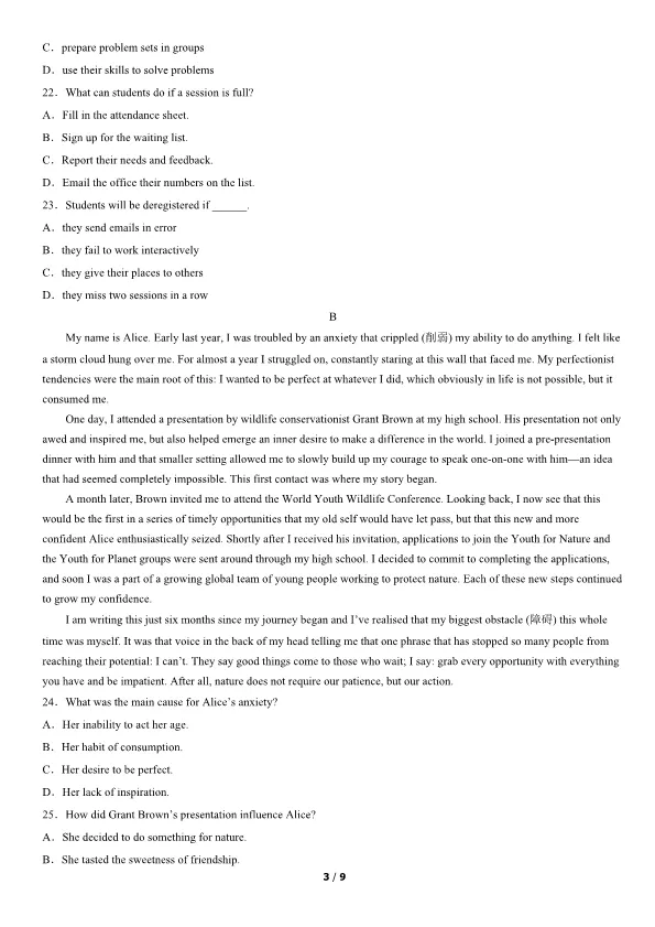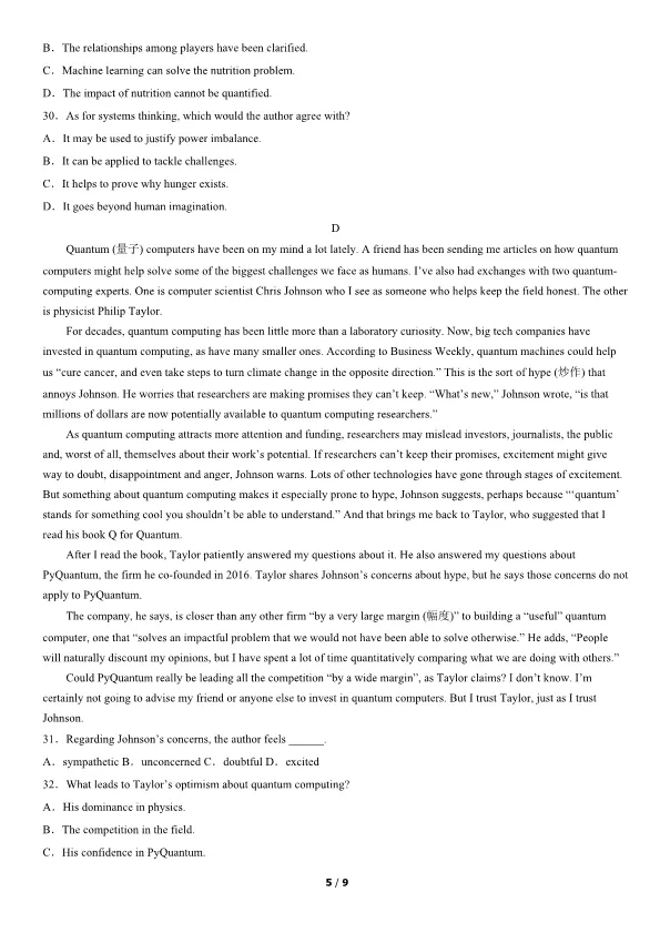 2022北京高考英语真题英语(有答案) 电子版试卷获取,后台回复:试卷