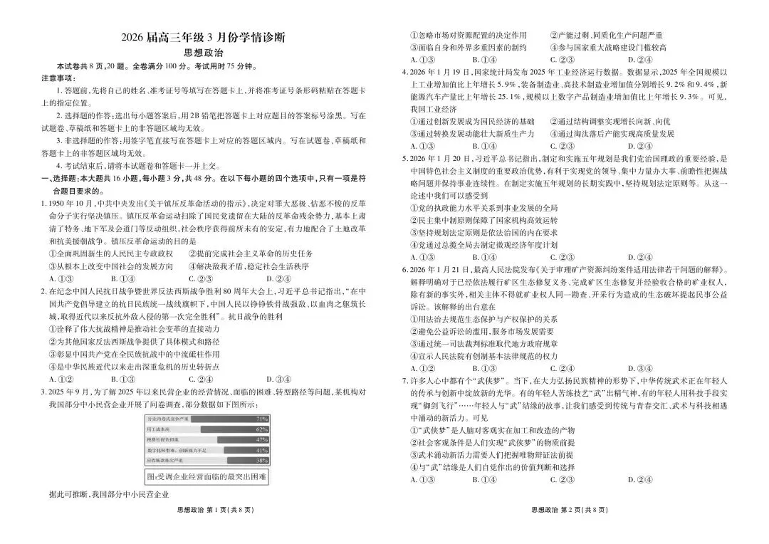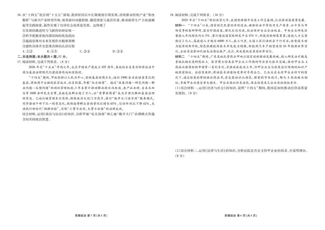 >【试卷】广东省衡水金卷2026年3月高三测试政治试卷