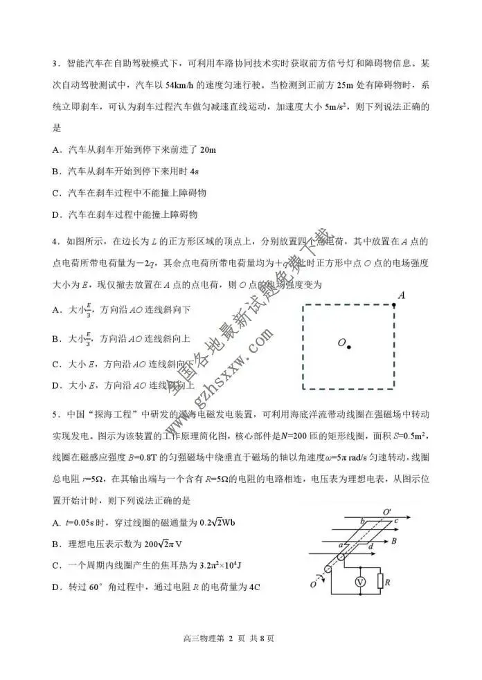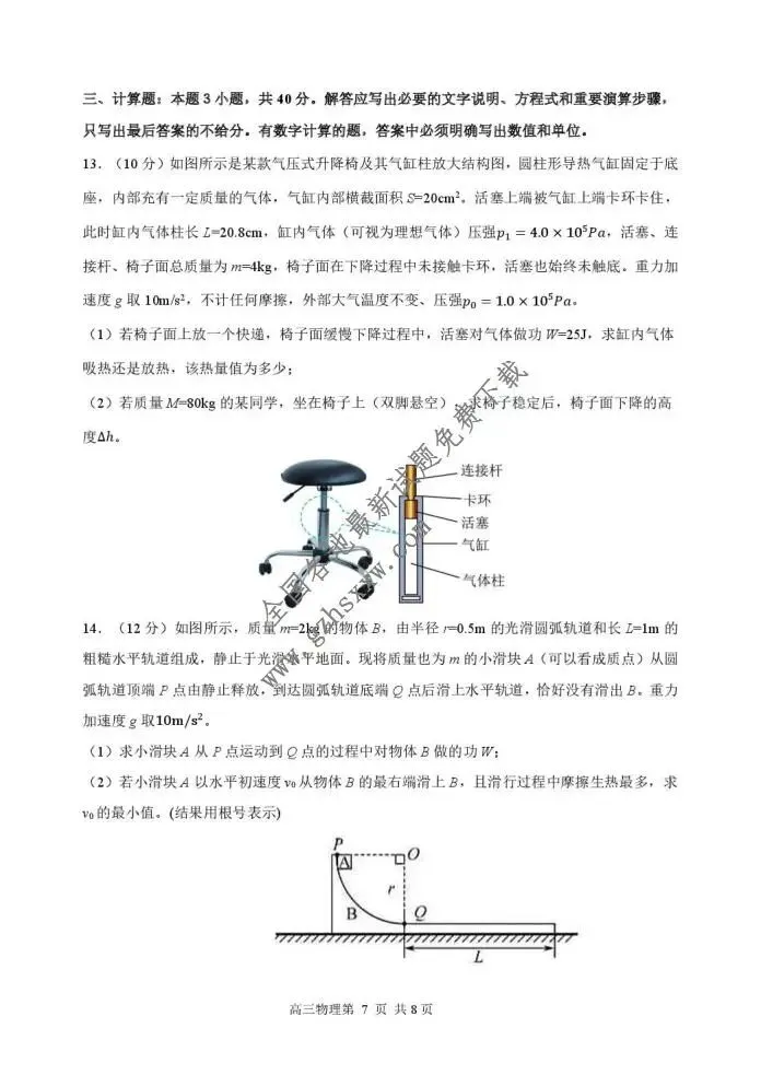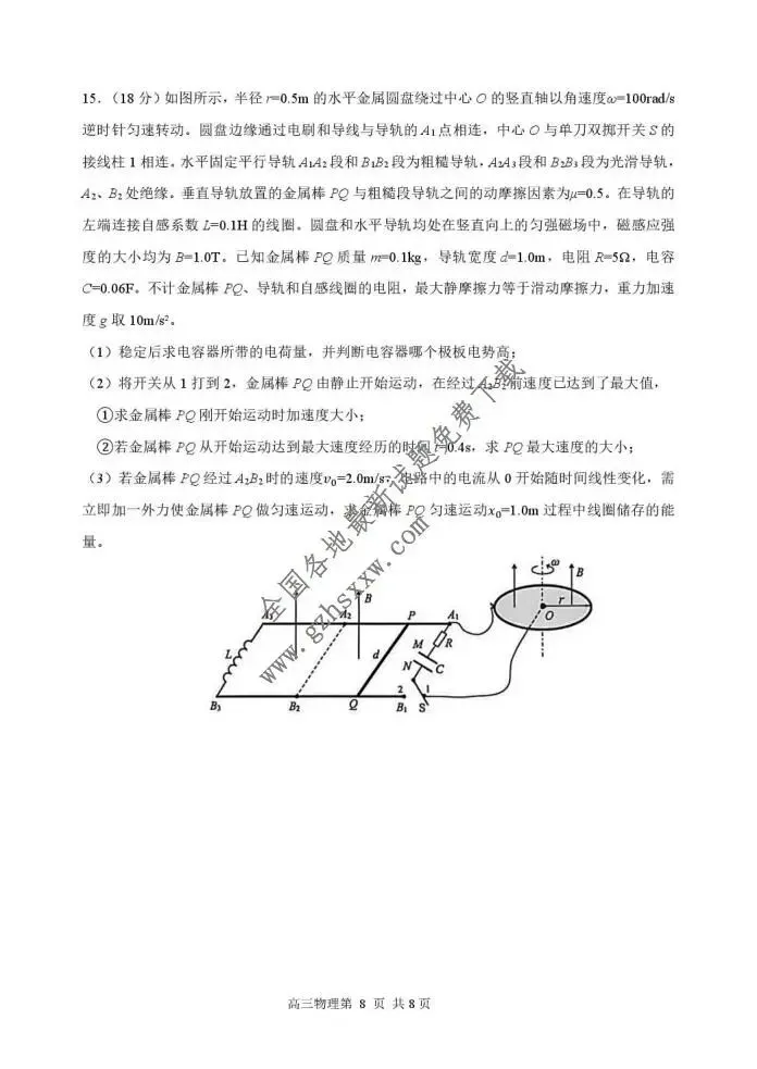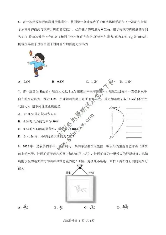 【高一、高二、高三最新月考试卷】2026届兰州一诊物理试卷+答案