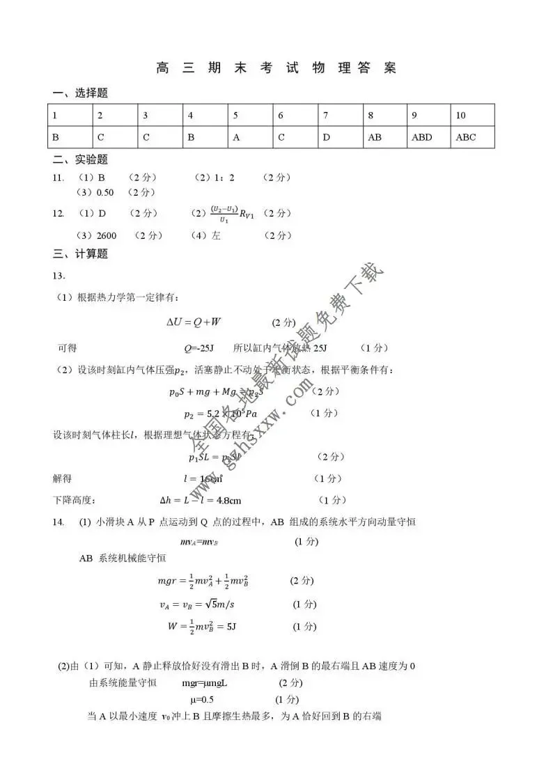 >《高中试卷》辽宁省丹东市2026届高三上学期期末教学质量监测物理试卷(含答案)