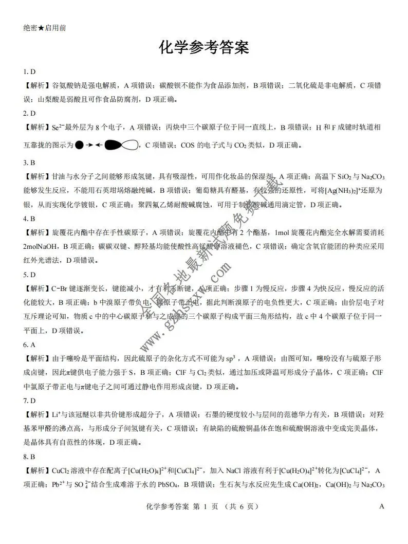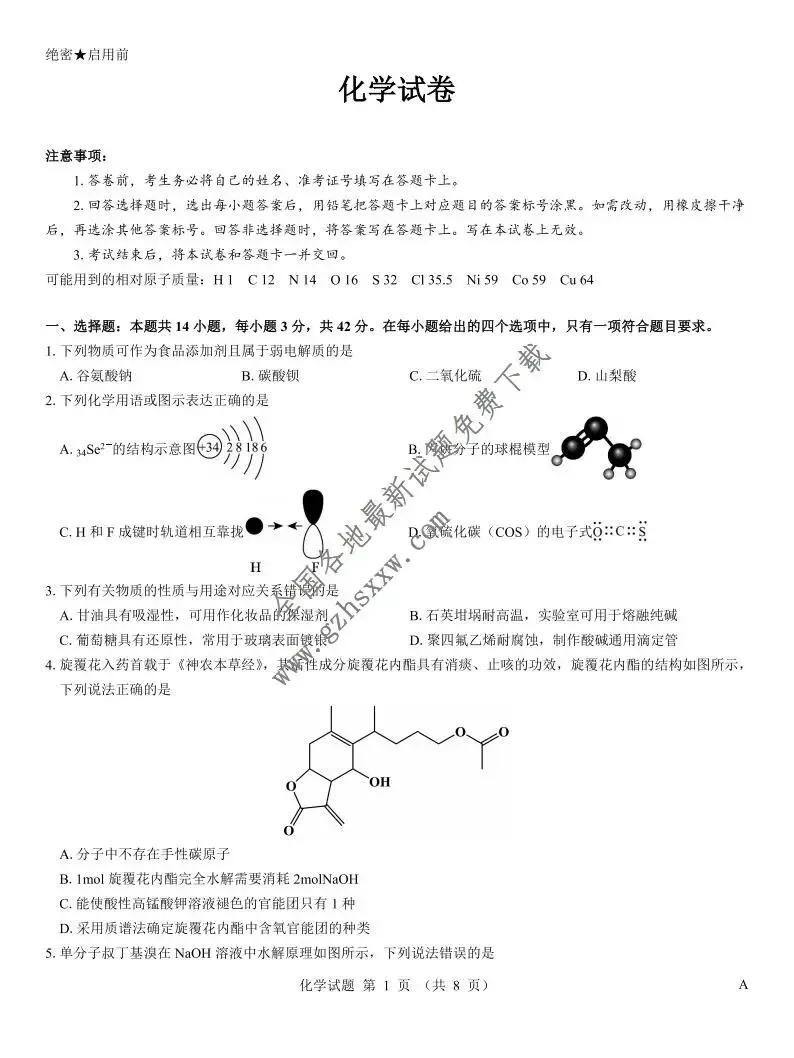 >《高中试卷》江西省名校2026届高三上学期1月联考化学试卷(含答案)