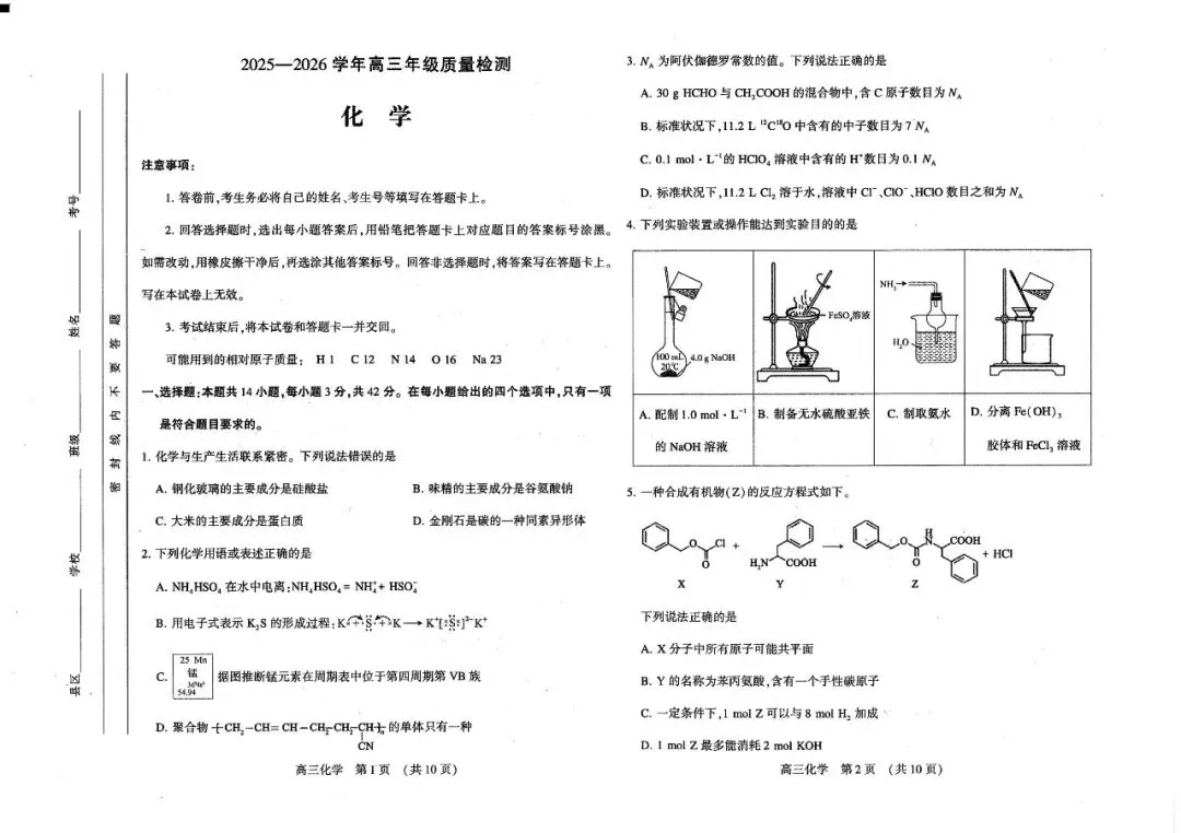 【答案+试卷】齐齐哈尔一模齐齐哈尔市2026届高三一模全科汇总!