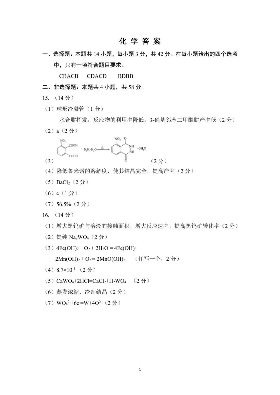 《高中试卷》江西省名校2026届高三上学期1月联考化学试卷(含答案)