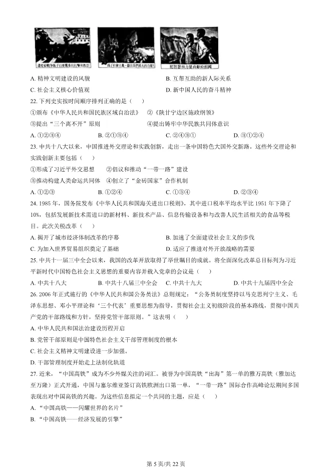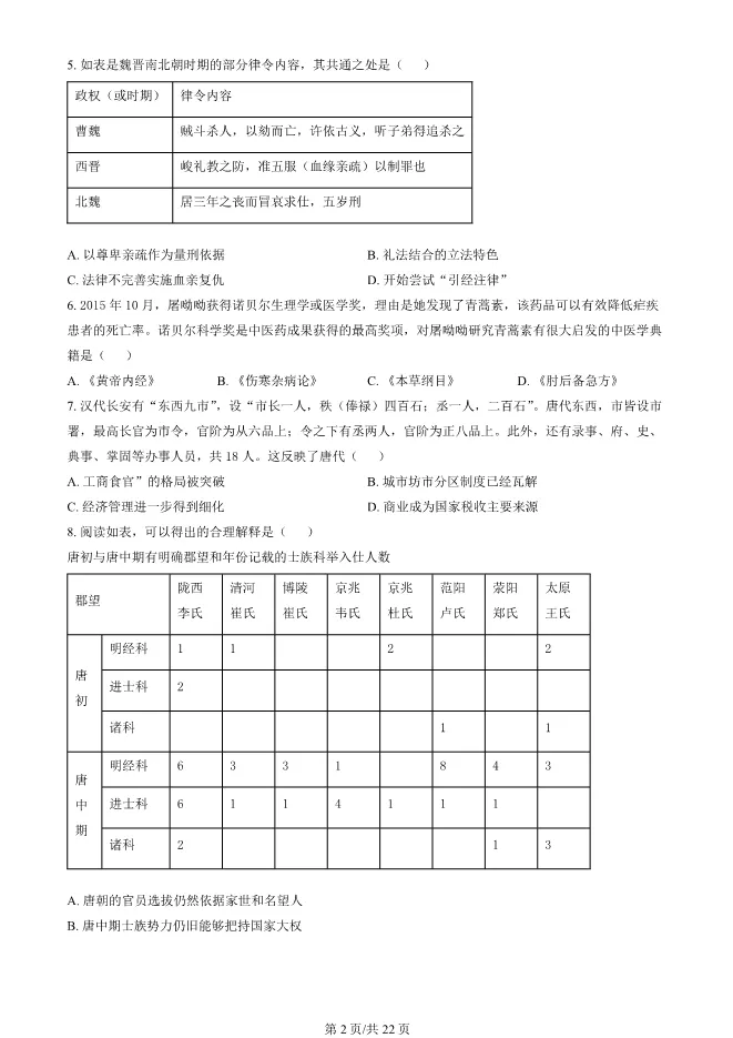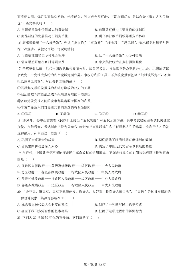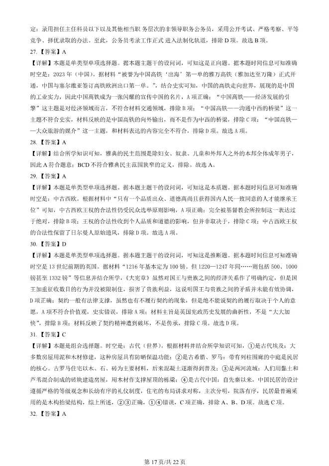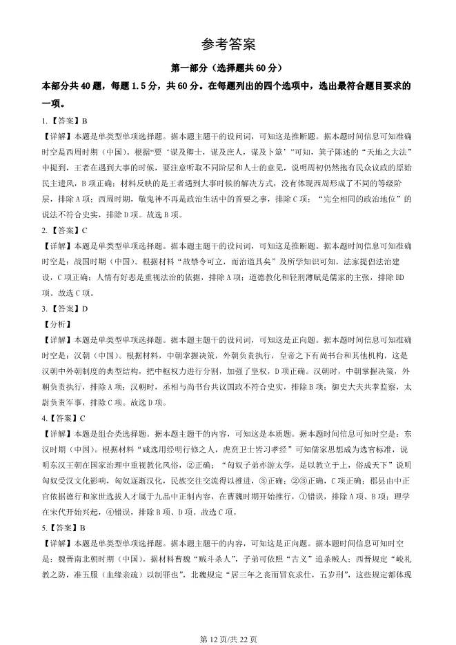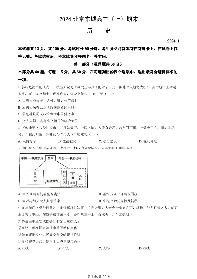 2024北京东城高二上册期末历史试卷(有答案) 电子版试卷获取,后台回复:试卷