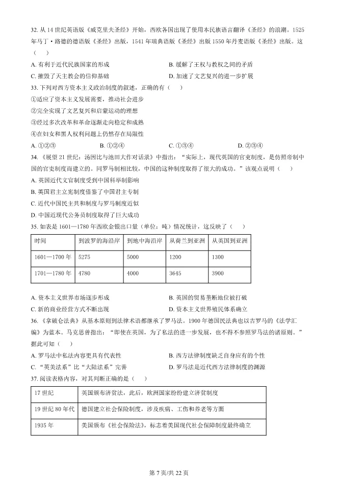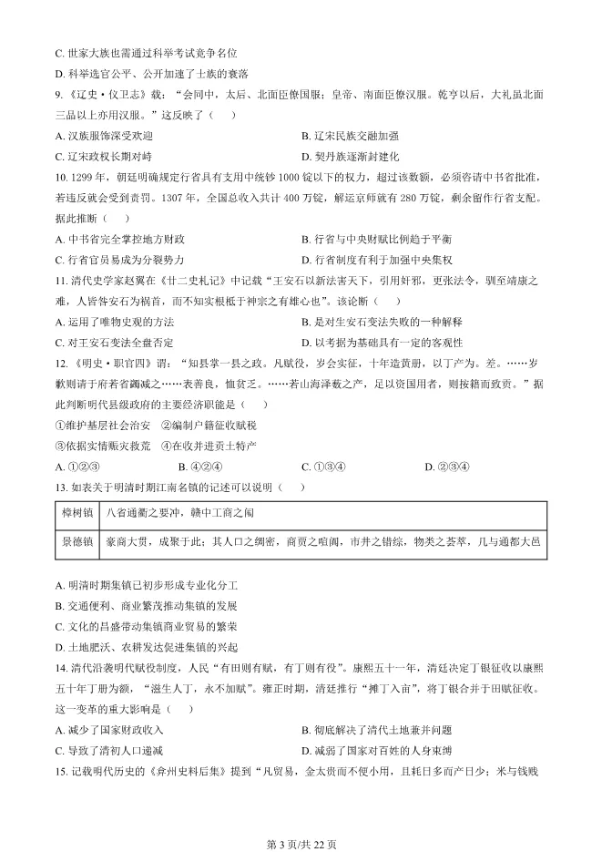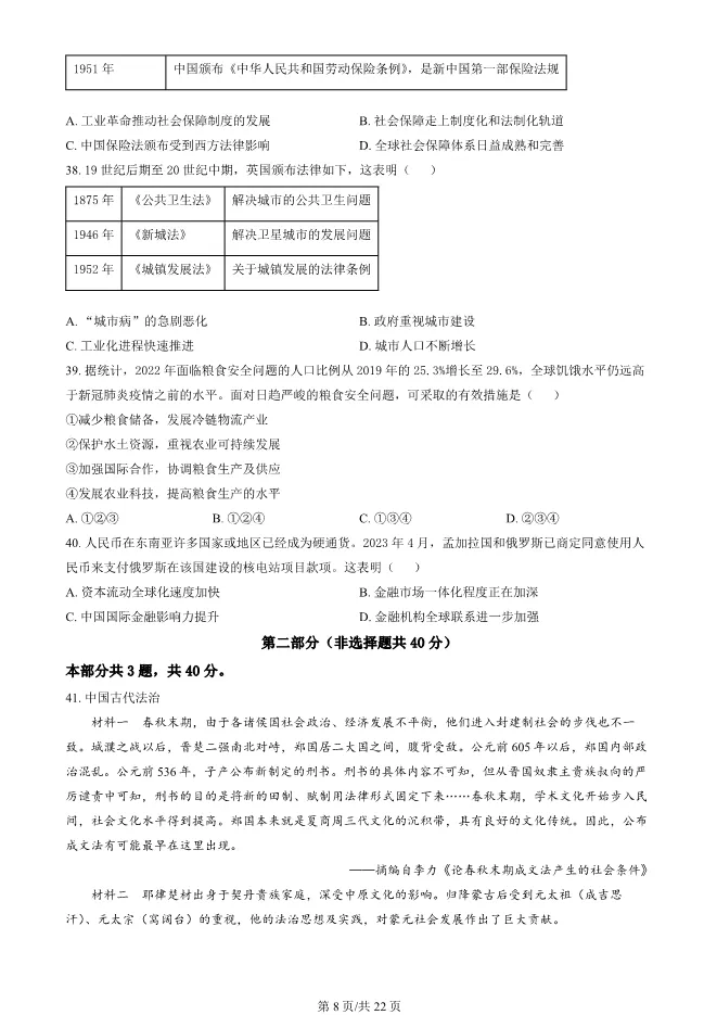 >2024北京东城高二上册期末历史试卷(有答案)【可下载】