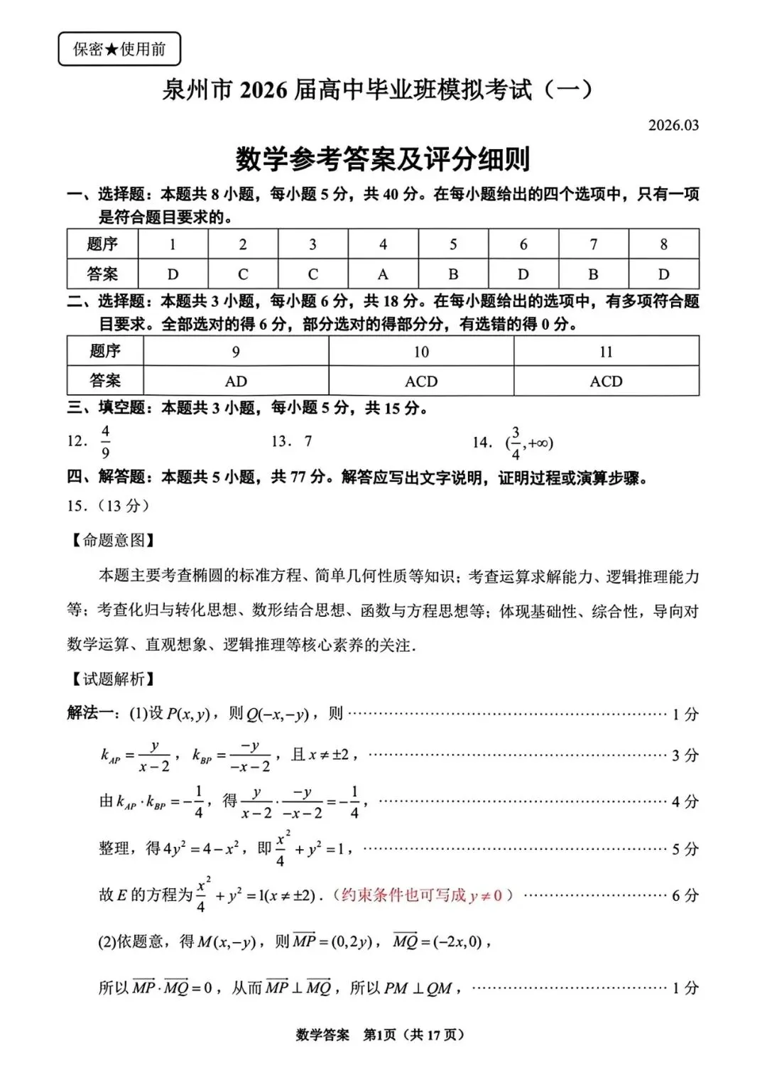 考试名称:泉州三检泉州市2026届高中毕业班高三模拟考试(一)