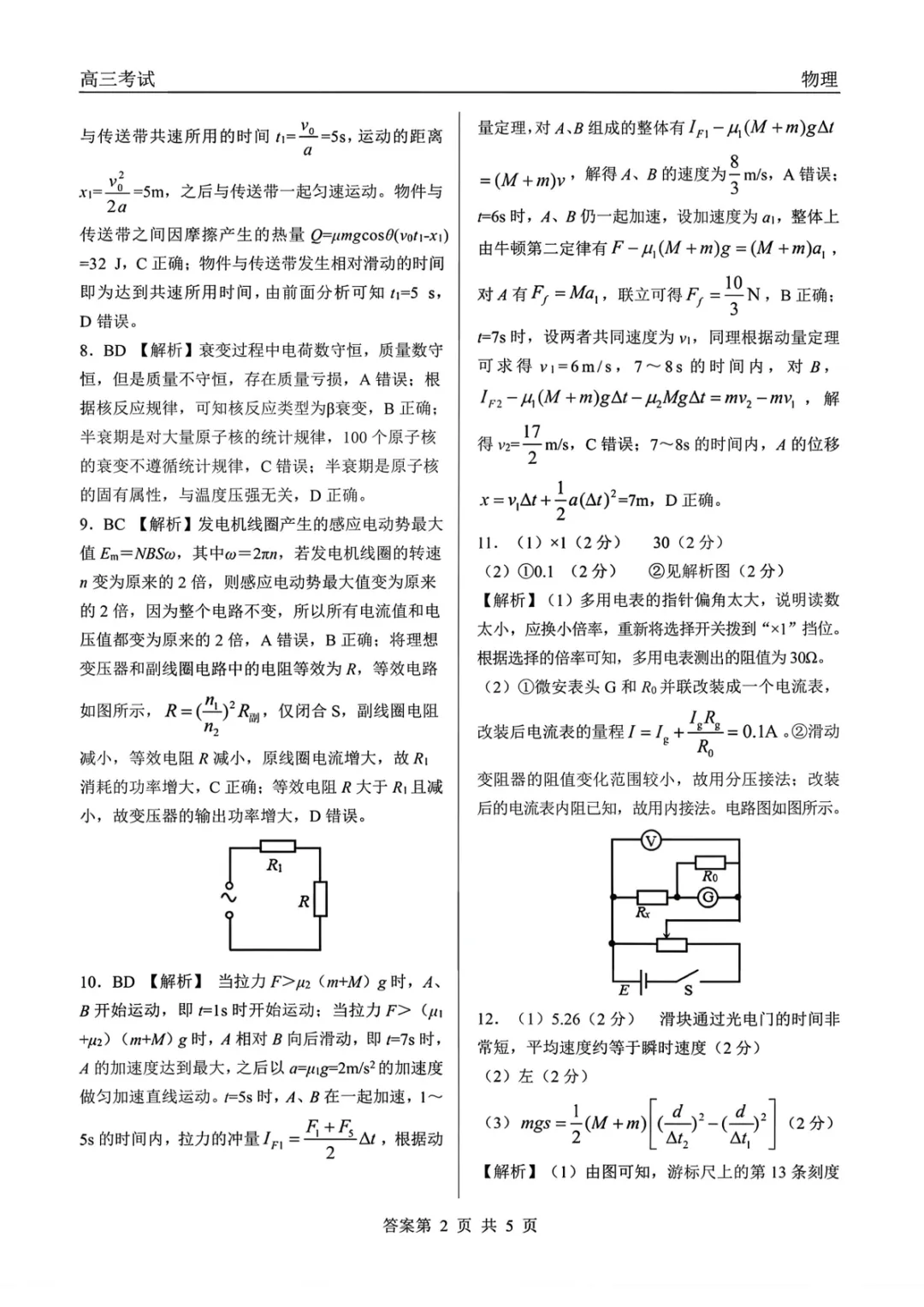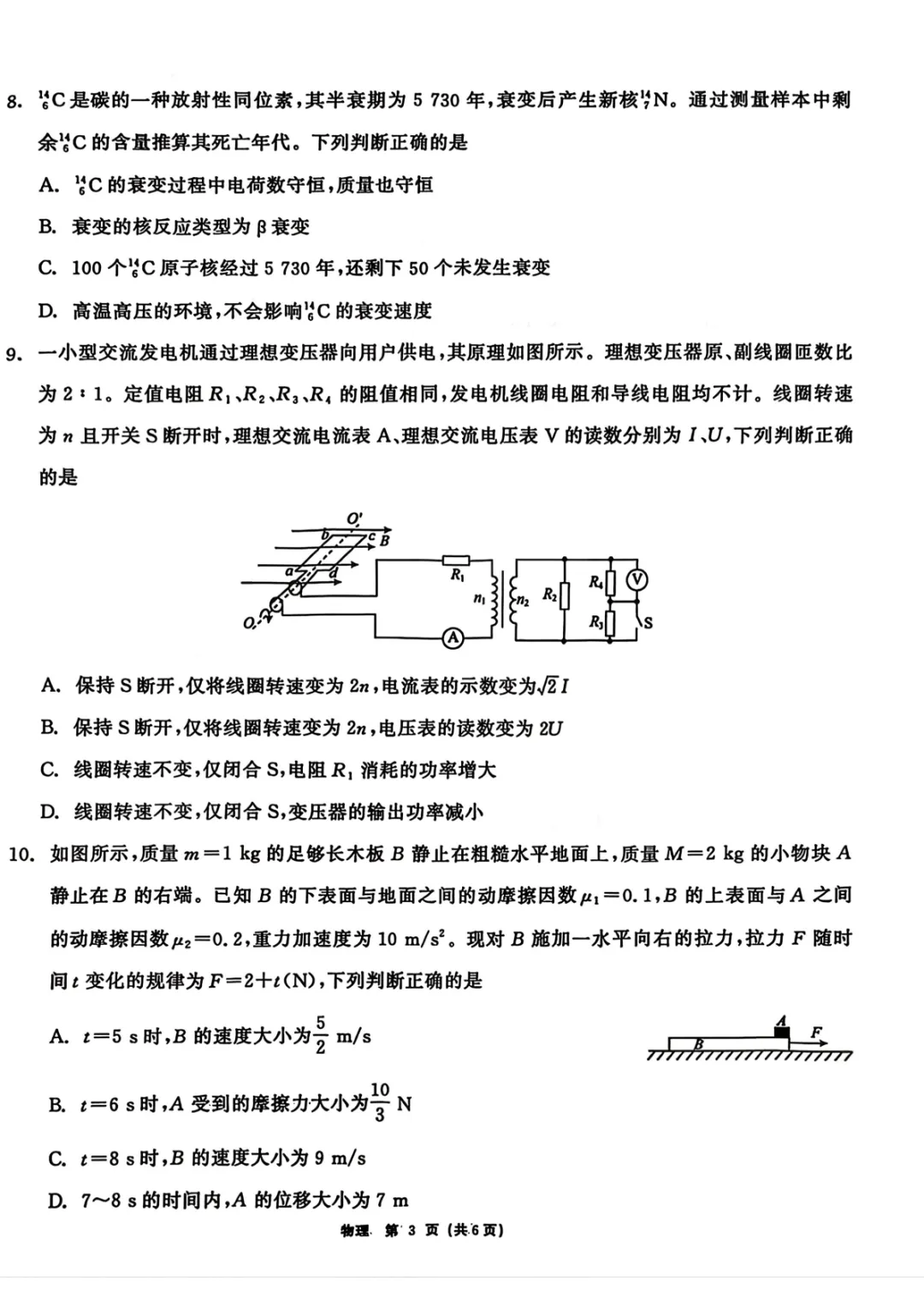 2026届齐齐哈尔市高三一模物理试卷+答案