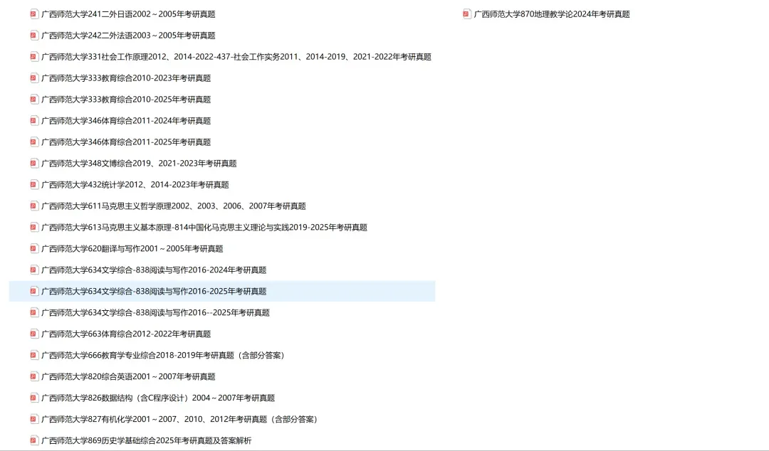 广西师范大学634文学综合-838阅读与写作2016-2025年考研真题