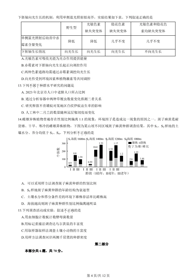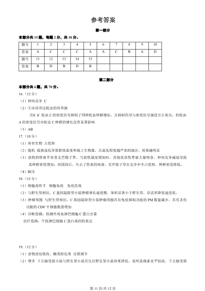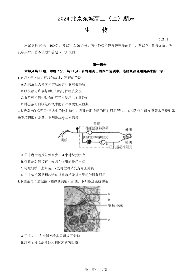 2024北京东城高二上册期末生物试卷(有答案) 电子版试卷获取,后台回复:试卷
