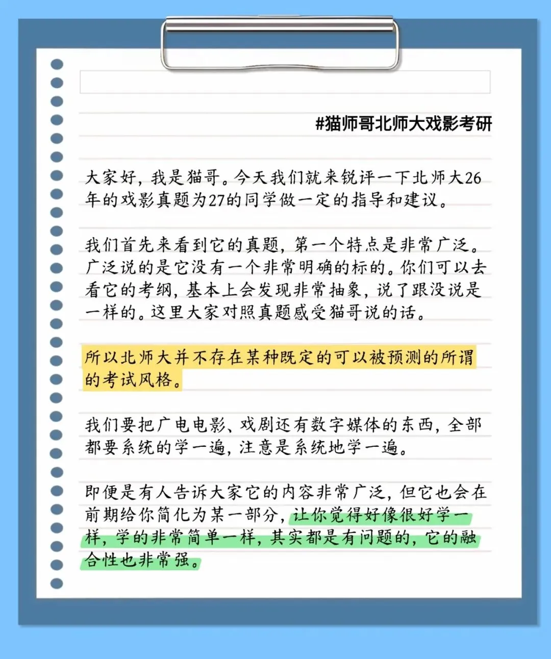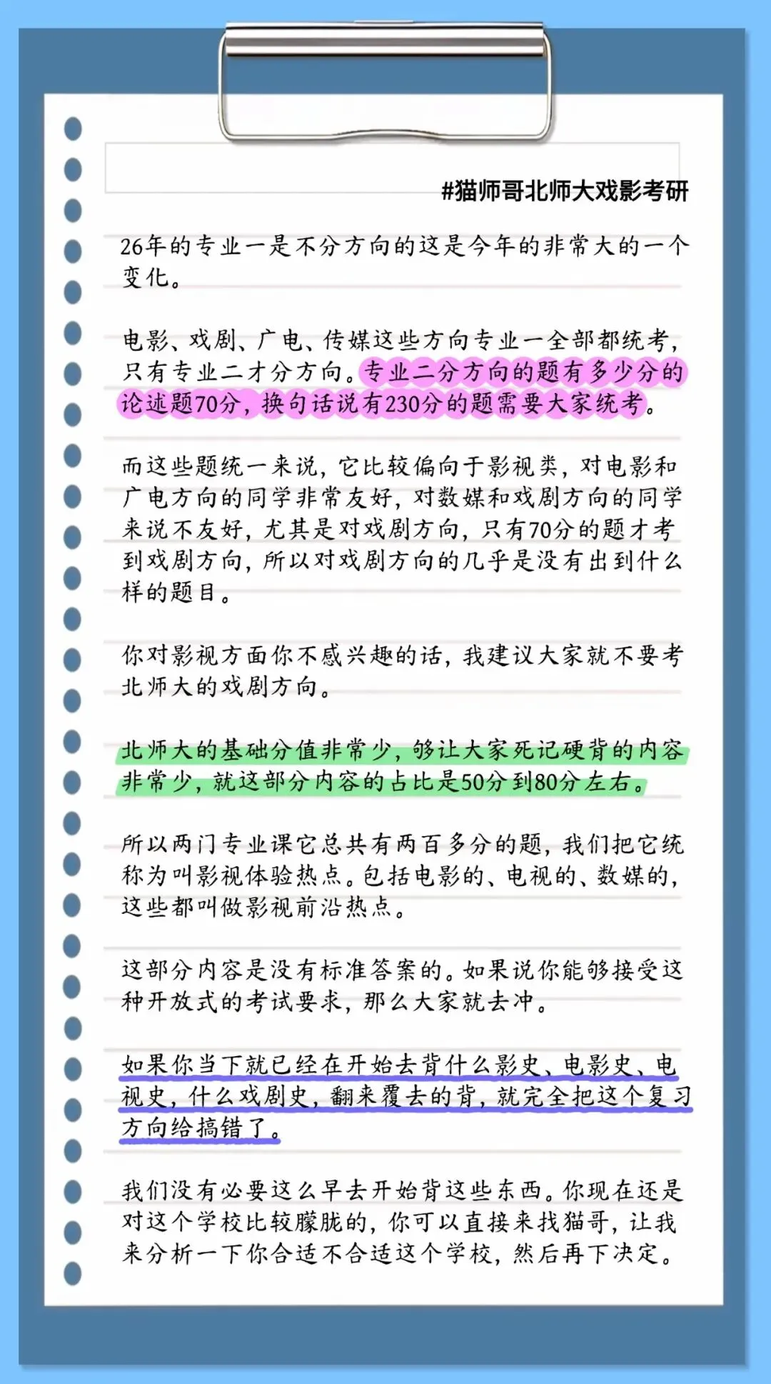 戏影考研||26北师大戏影专硕真题详细分析(26总结复盘、27考研必看)