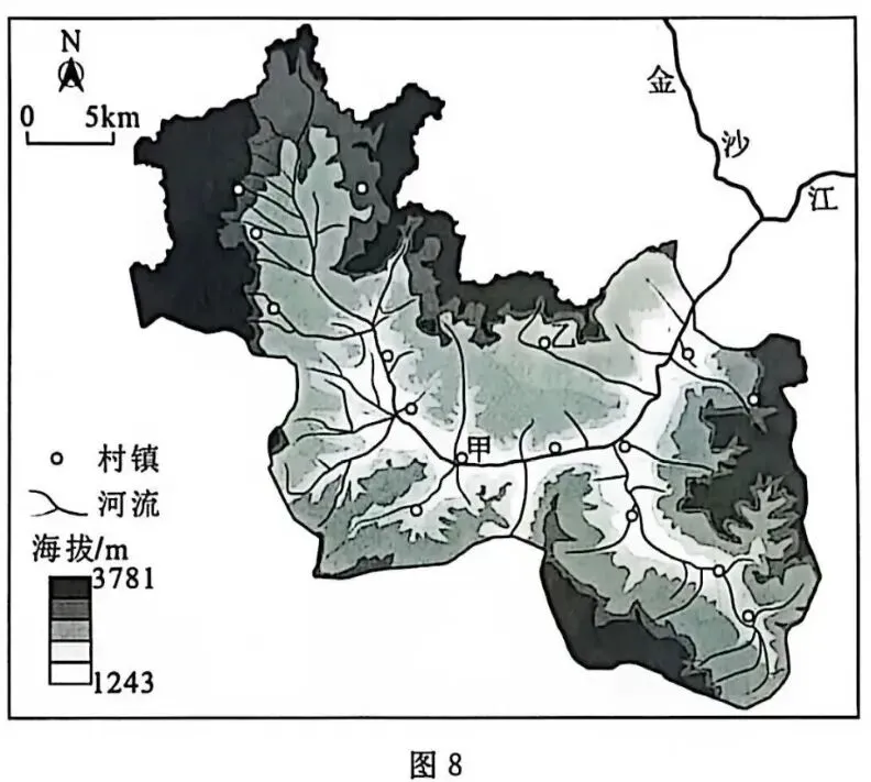 (3)某研学小组对图中甲,乙两地进行考察后,认为均适合布局光伏发电项目。请在两地中任选其一,说明理由。(6分)