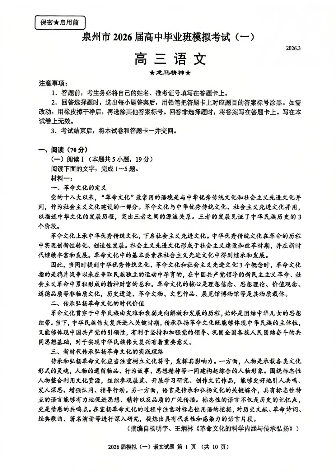 泉州2026届高三三检