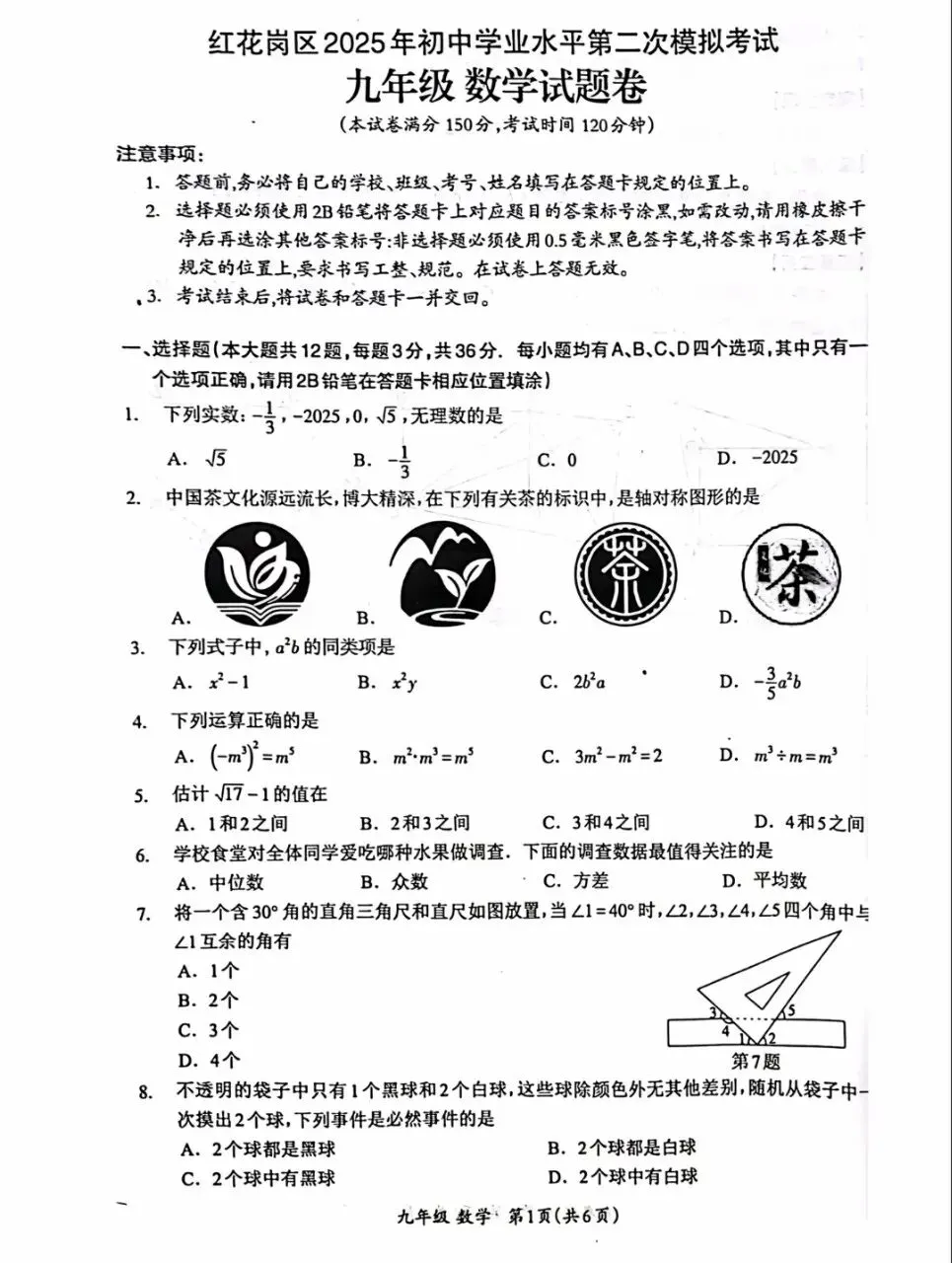 >遵义市红花岗区2025年中考模拟试卷