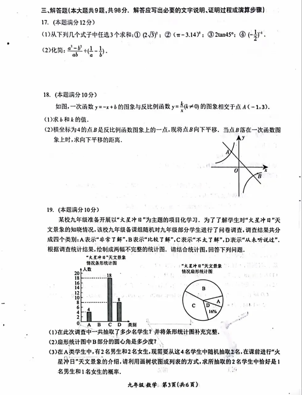 2026年广东省九年级下学期3月数学试卷(含答案)