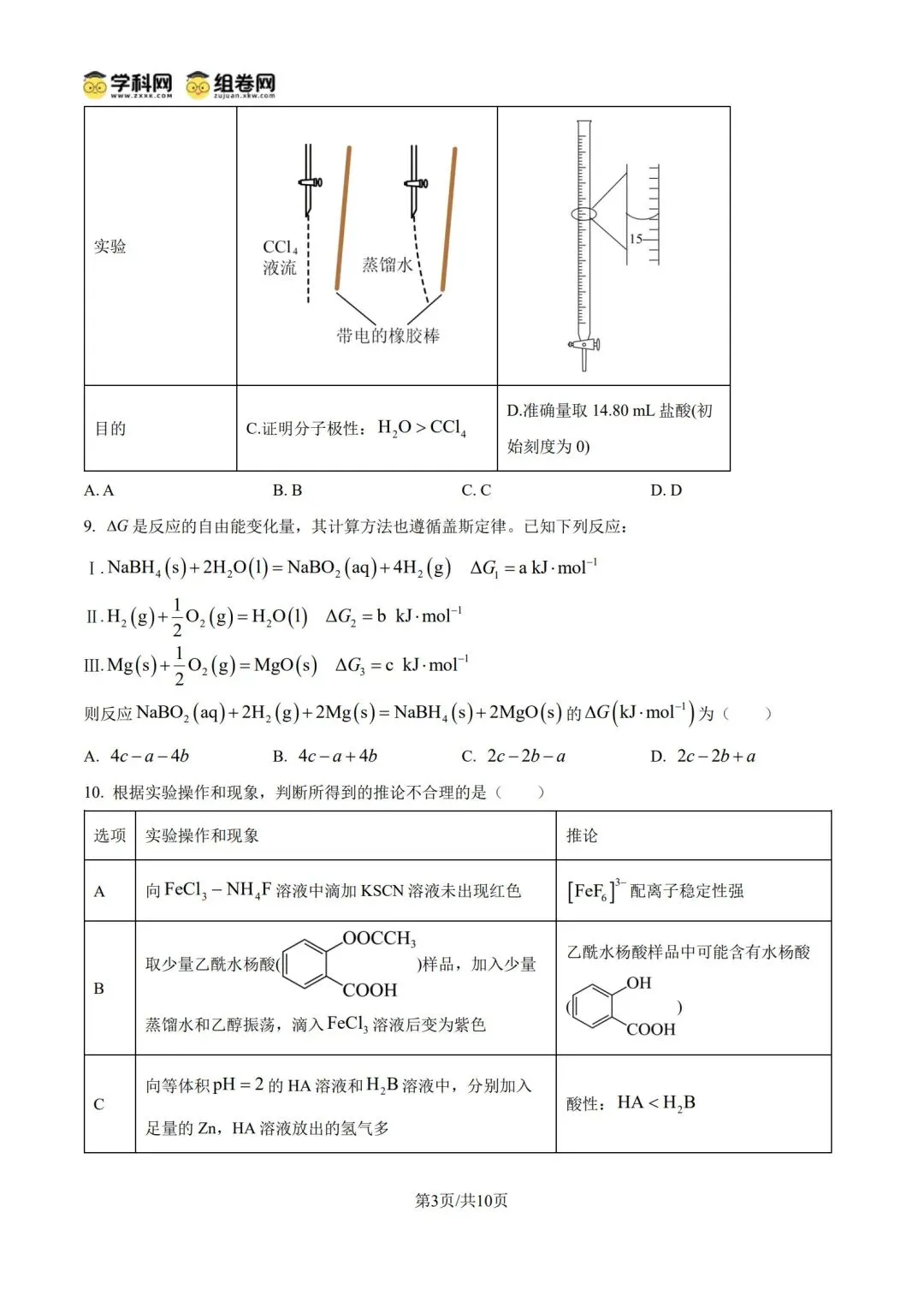 重庆八中2026届高三下入学考试化学试卷+参考答案