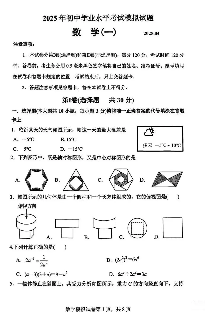 >2025年山东省临沂市费县数学一模试卷(含答案)