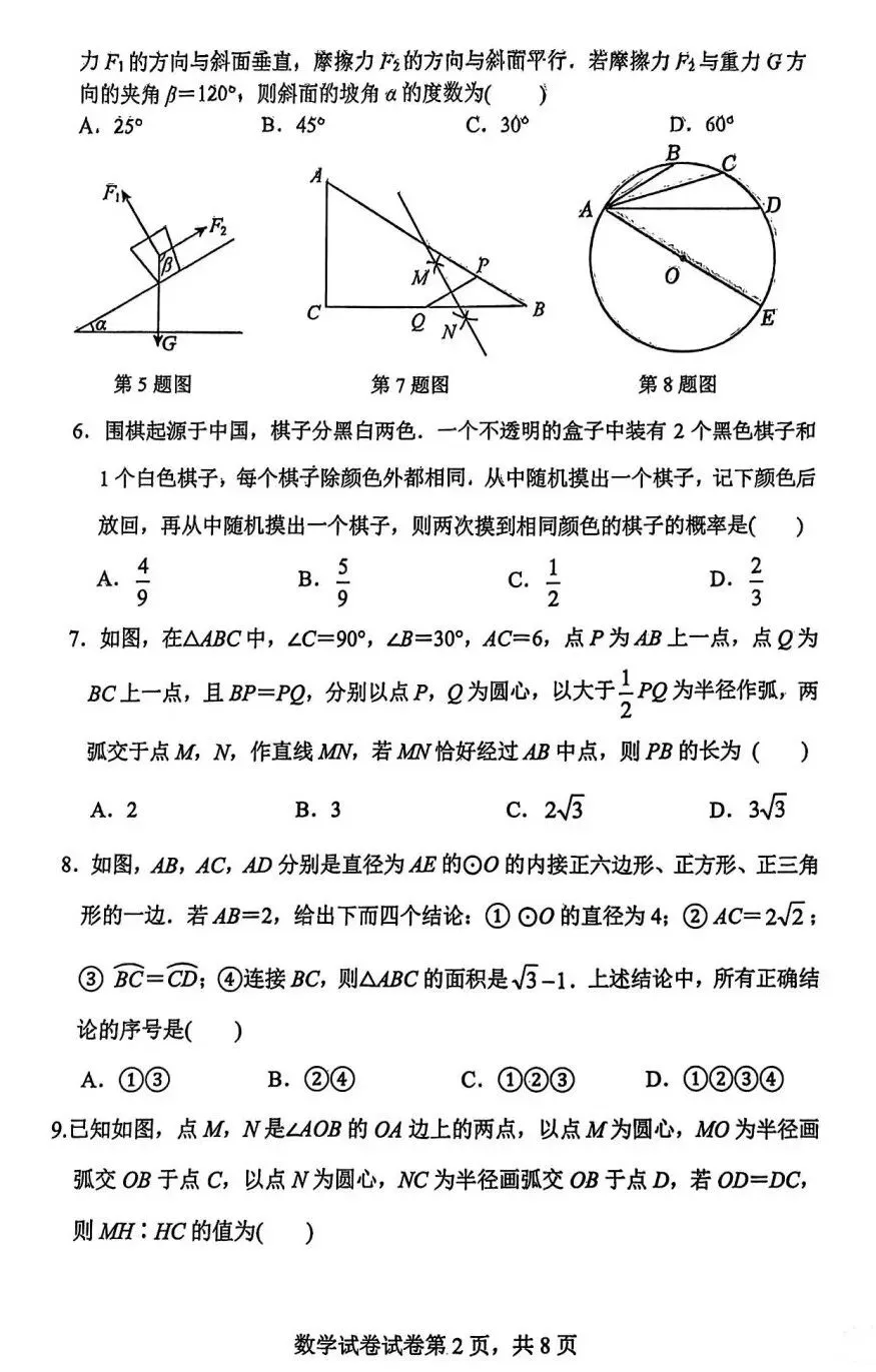 ●中考真题●庆阳市2025年中考试卷(语数英物化政史)