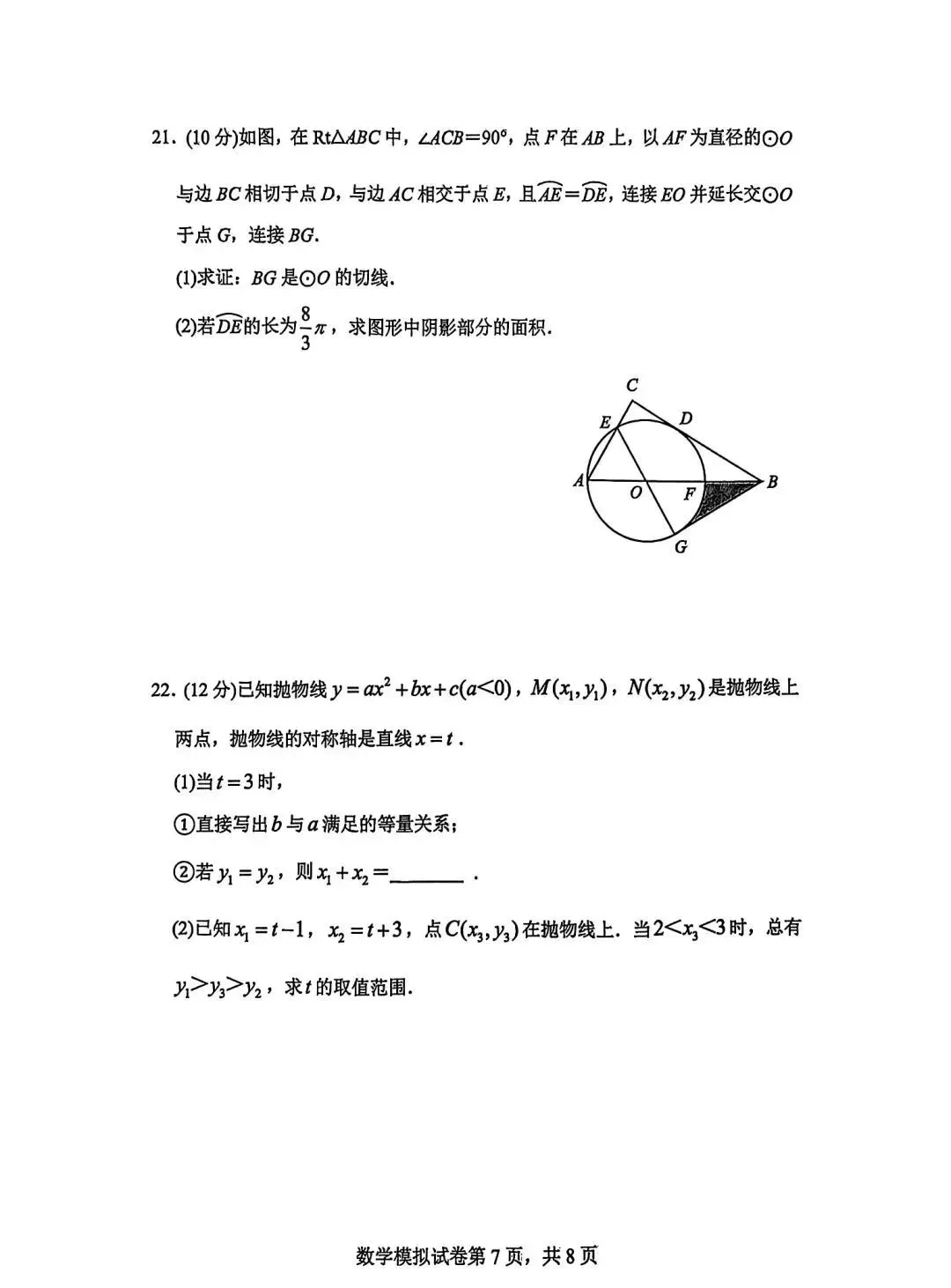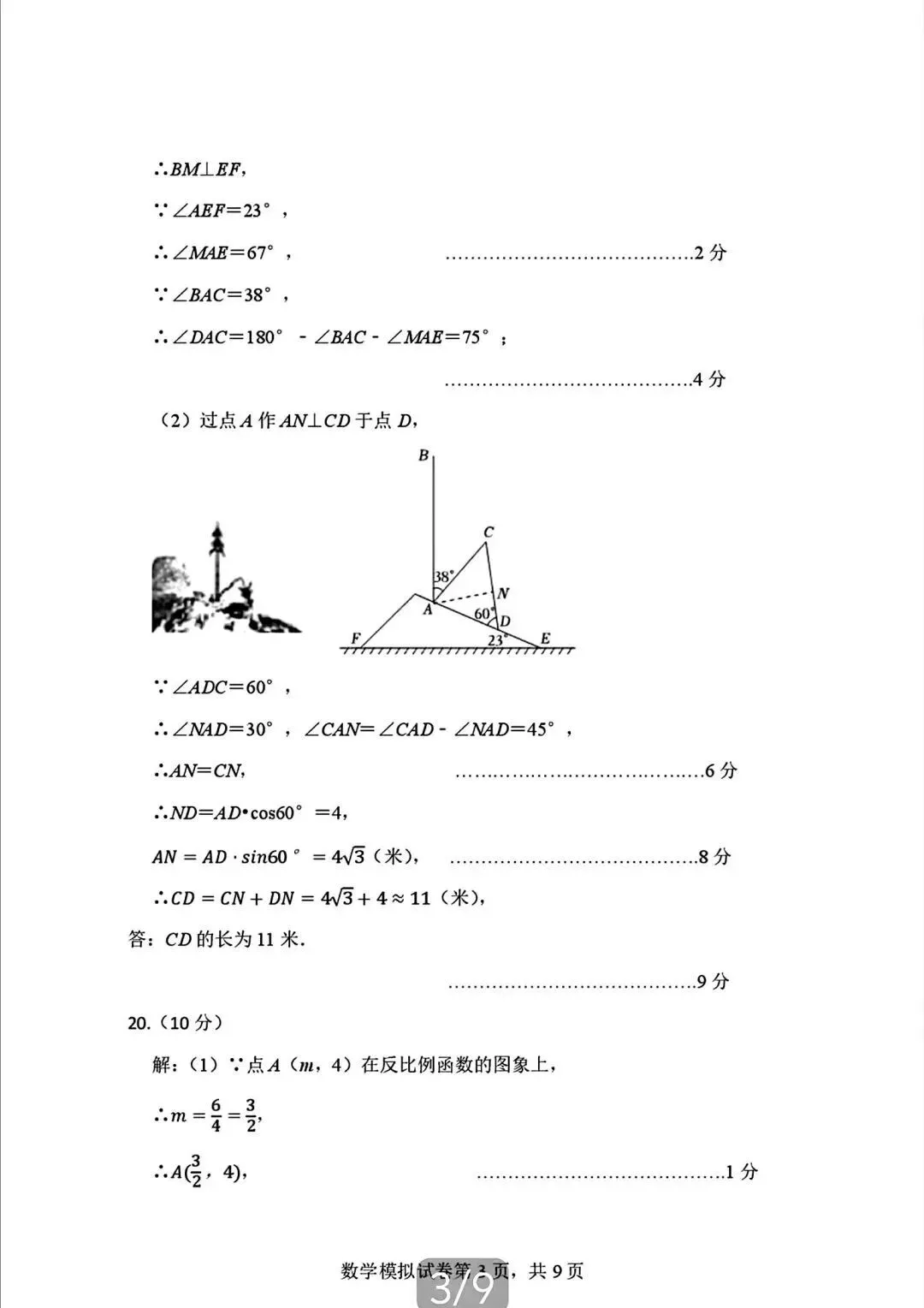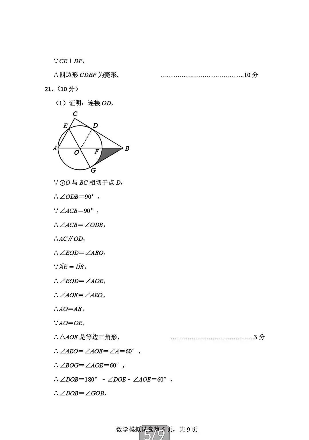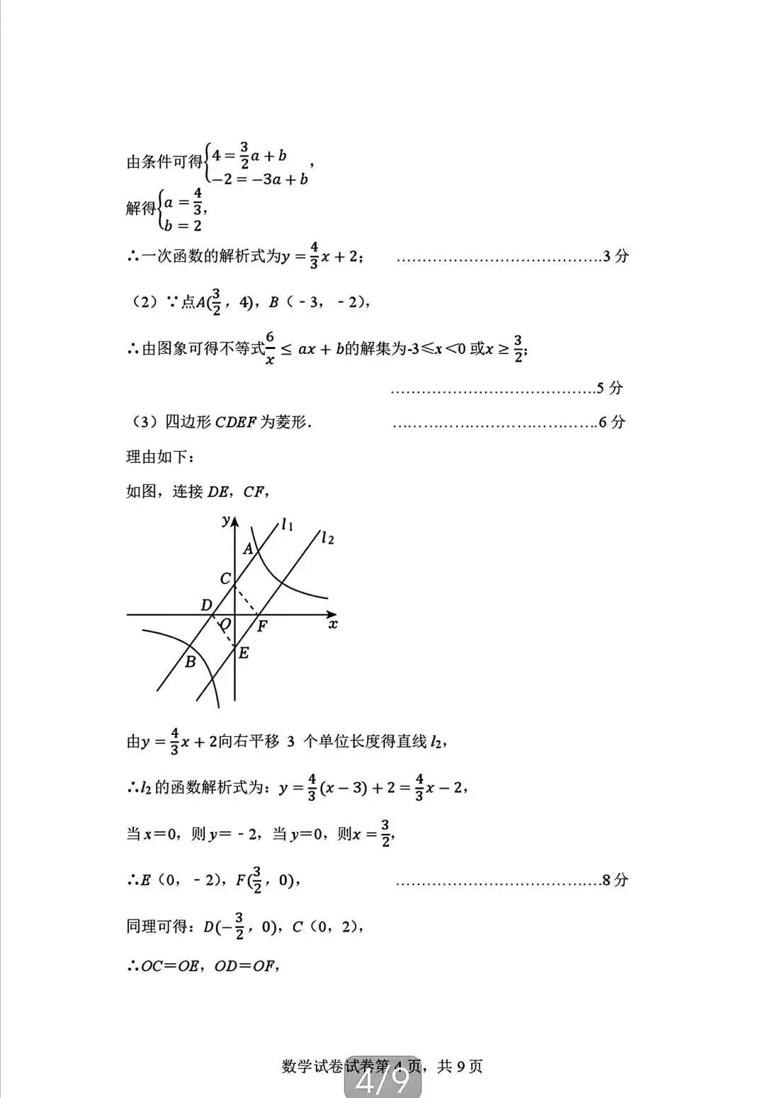 2026年广东省九年级下学期3月数学试卷(含答案)