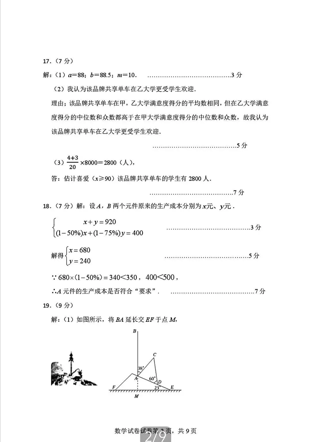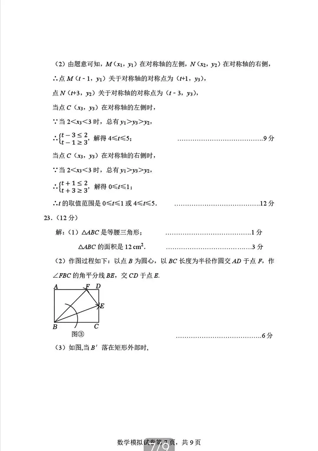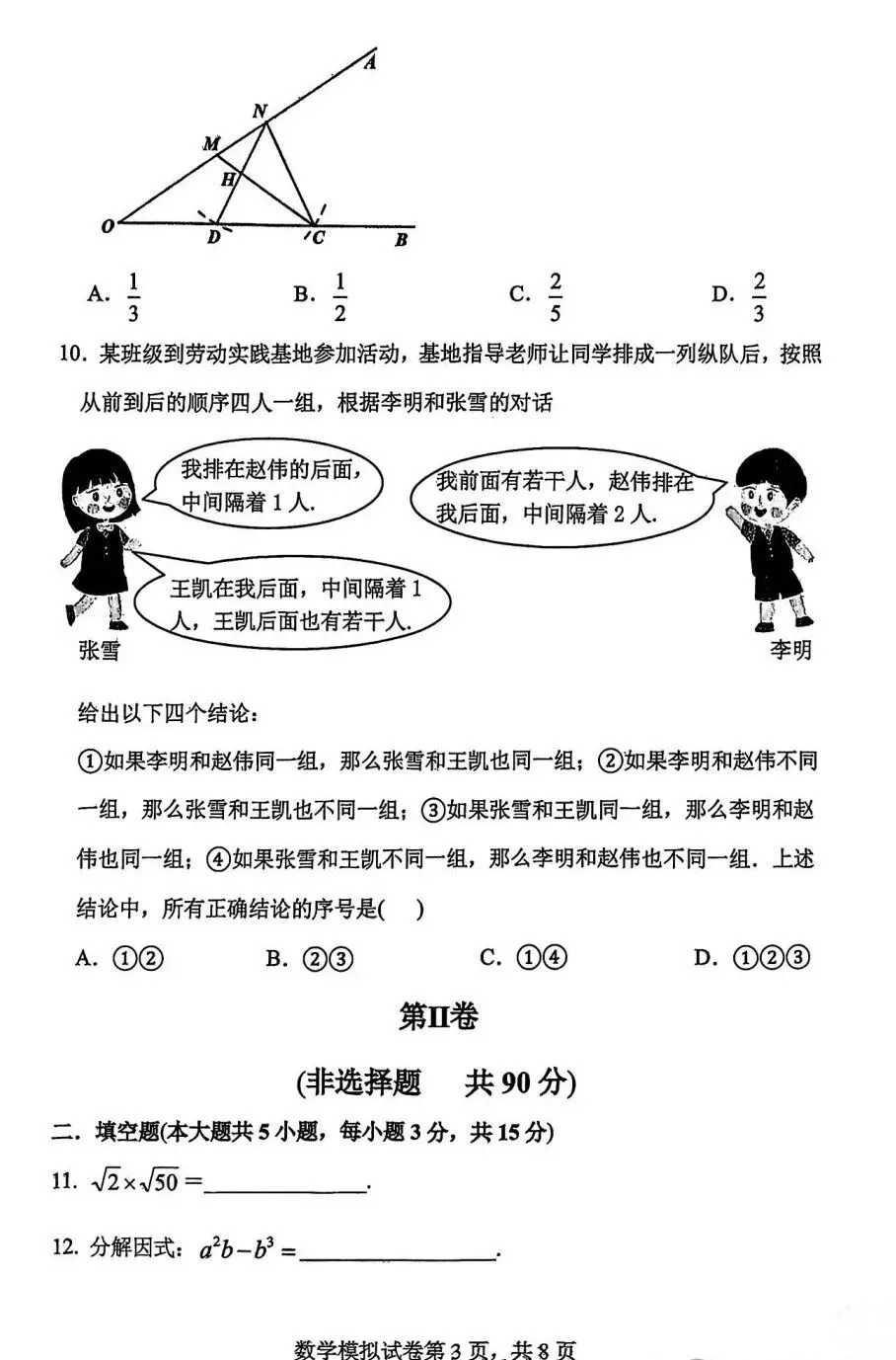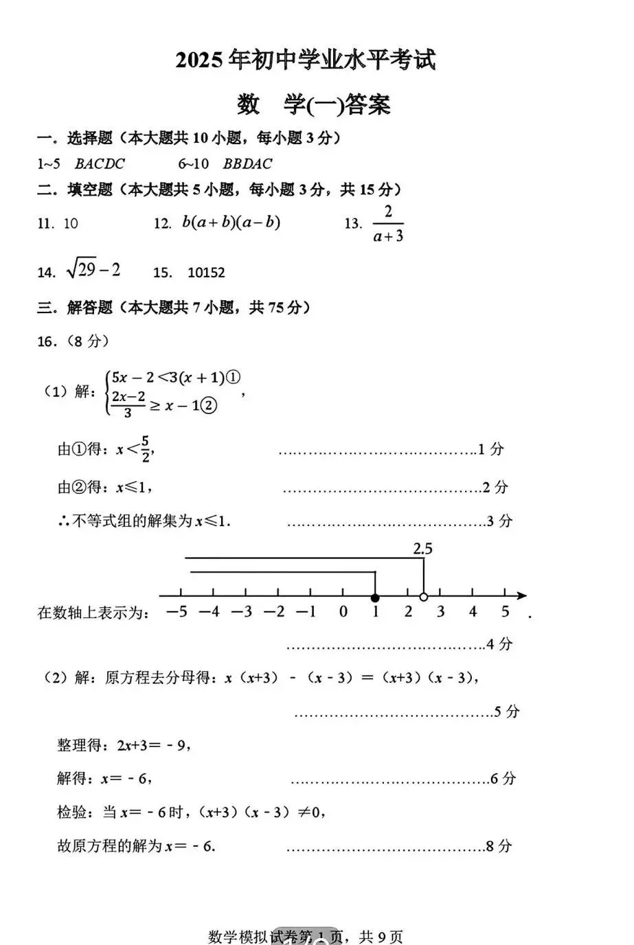 2026年广东省九年级下学期3月数学试卷(含答案)