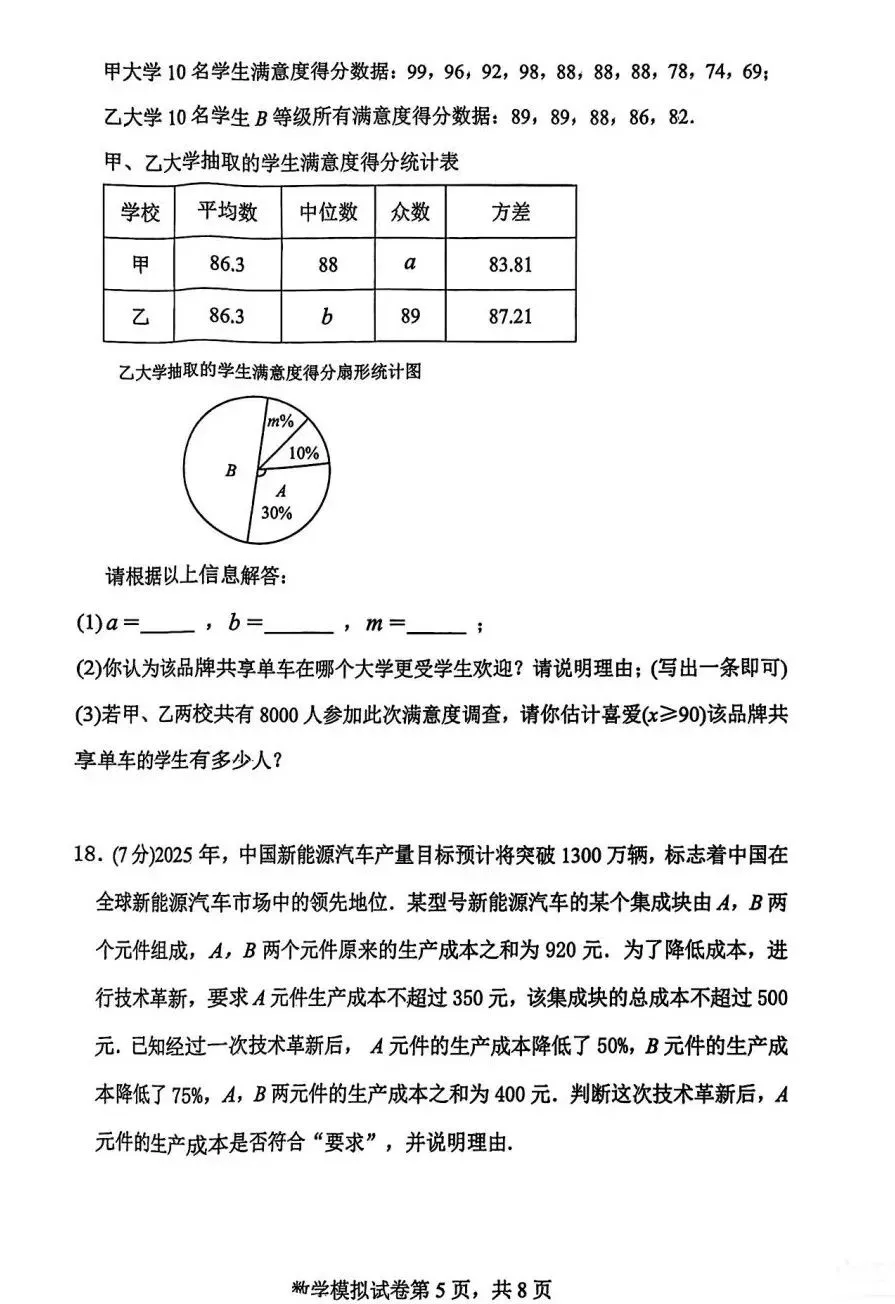 2026河北中考数学模拟试卷摸底一摸底二