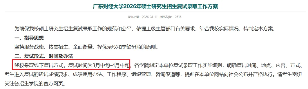 广东财经大学复试线和复试方案都已经公布:采取线下复试方式。复试时间为3月中旬—4月中旬。