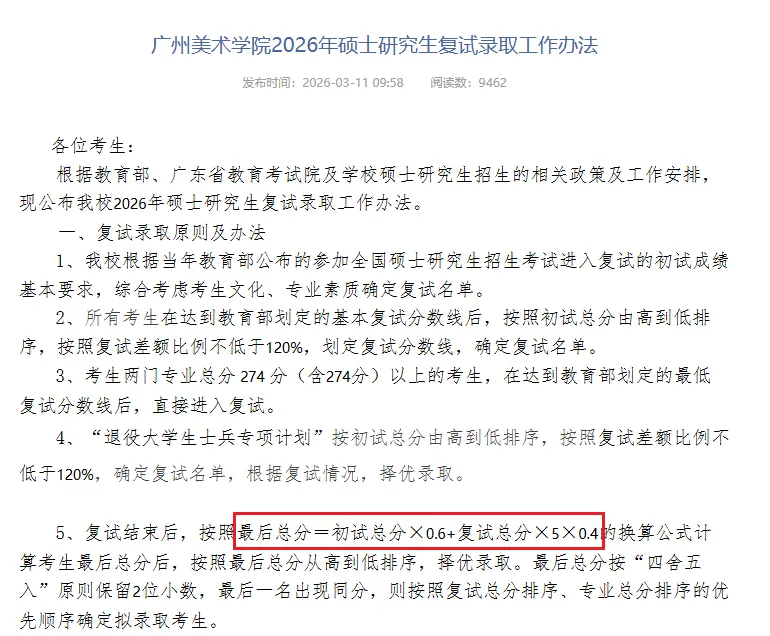 广州美术学院发布2026年硕士研究生复试录取工作办法,一志愿现场复试,3月19日开始复试。