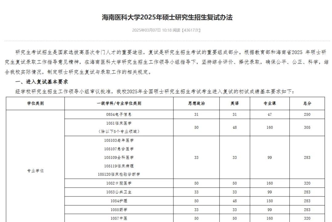 海南医科大学发布2026年硕士研究生招生复试录取办法:一志愿复试时间为3月中下旬,采用线下复试形式。