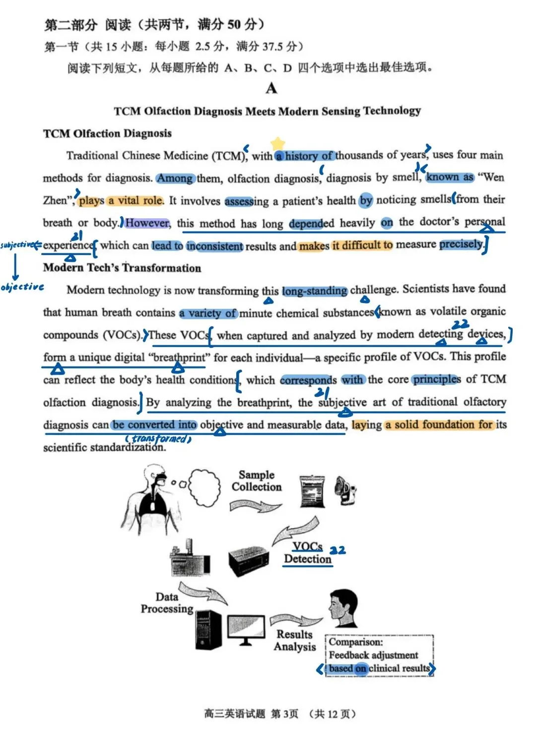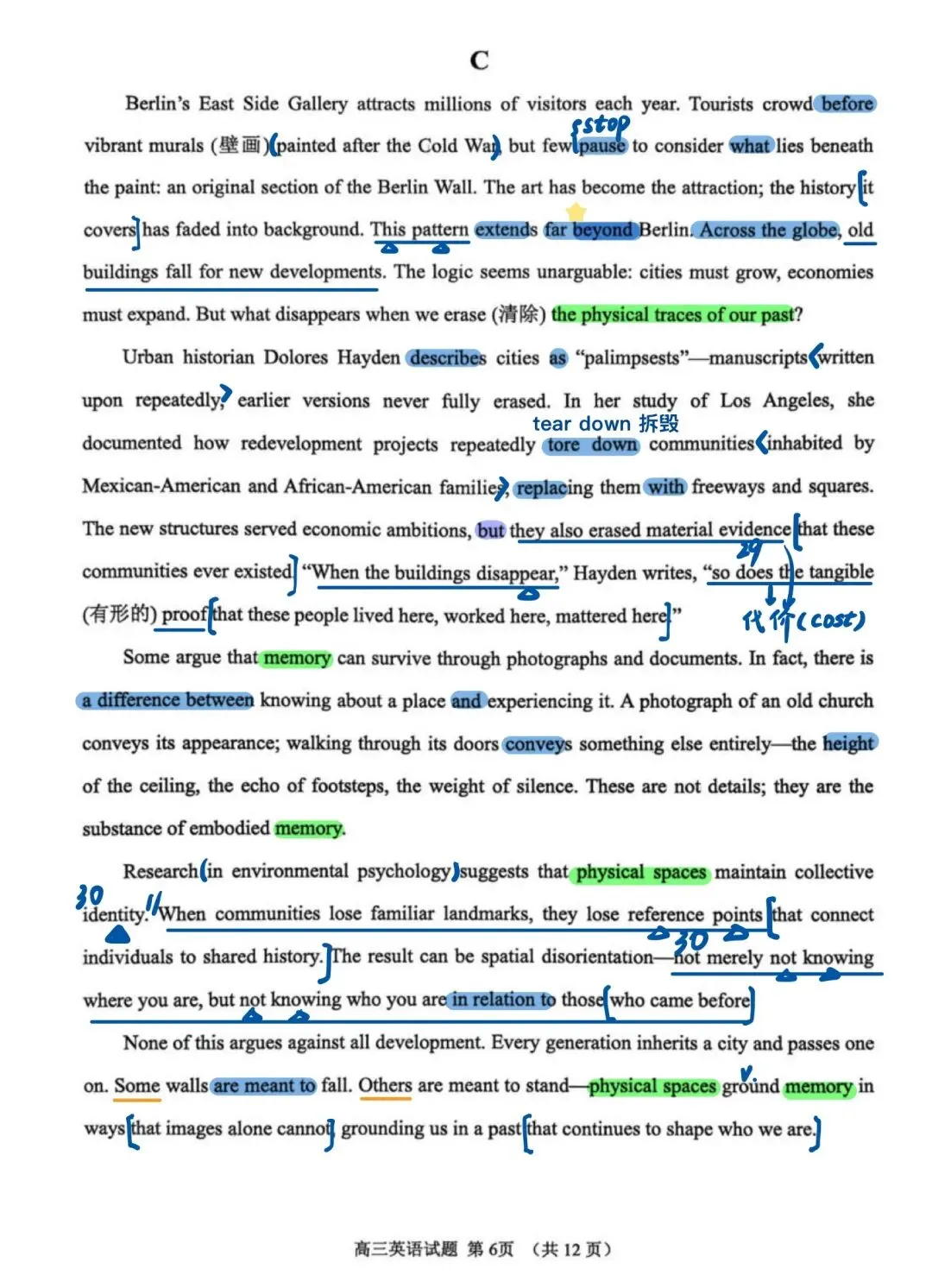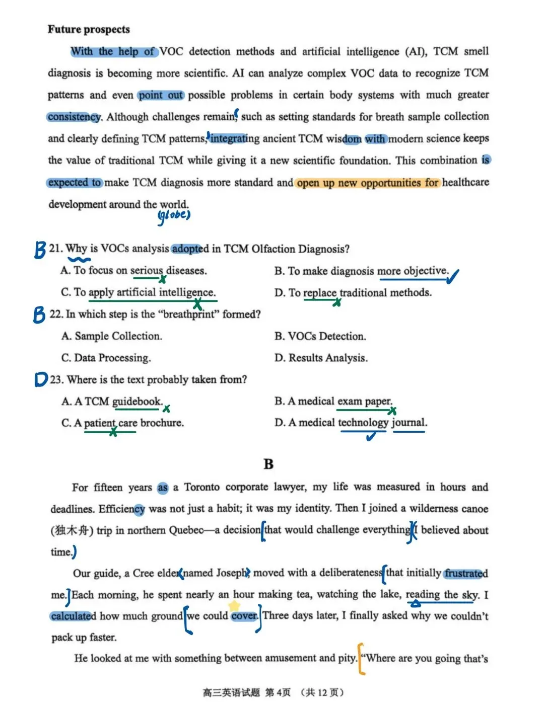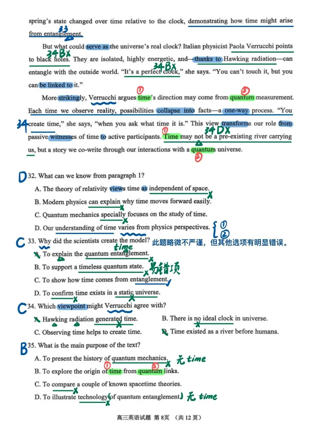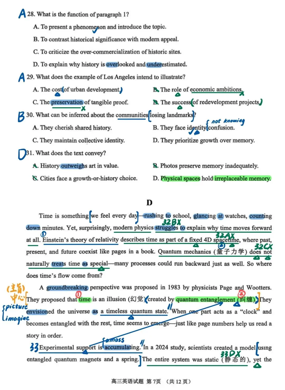 近期山东模考做过的试题中,我最喜欢这套试卷!首先难度肯定是有的,但不是“强人所难”其次,该套试卷在选材方面非常出色。不再是一些考了无数次的人间温情小故事、二氧化碳、珊瑚……所选篇章皆有意义,即便B篇是个人转变类文章,也有新的感觉,其中27题出得很好另外该套试卷涵盖了很多重点词汇和表达,很适合检验一轮复习的成果,也有不少值得学习之处,如完形45题、47题C篇在话题上对标25年全国一卷C篇D篇阅读最大的障碍似乎不是理解难度,而是心里那一关,考验考生面对生僻话题能否克服“畏难情绪”,冷静分析。七选五注意37题、40题完形填空注意43题、 45 题和55题语法填空出得也很精良,有几道高考题的影子,值得练习