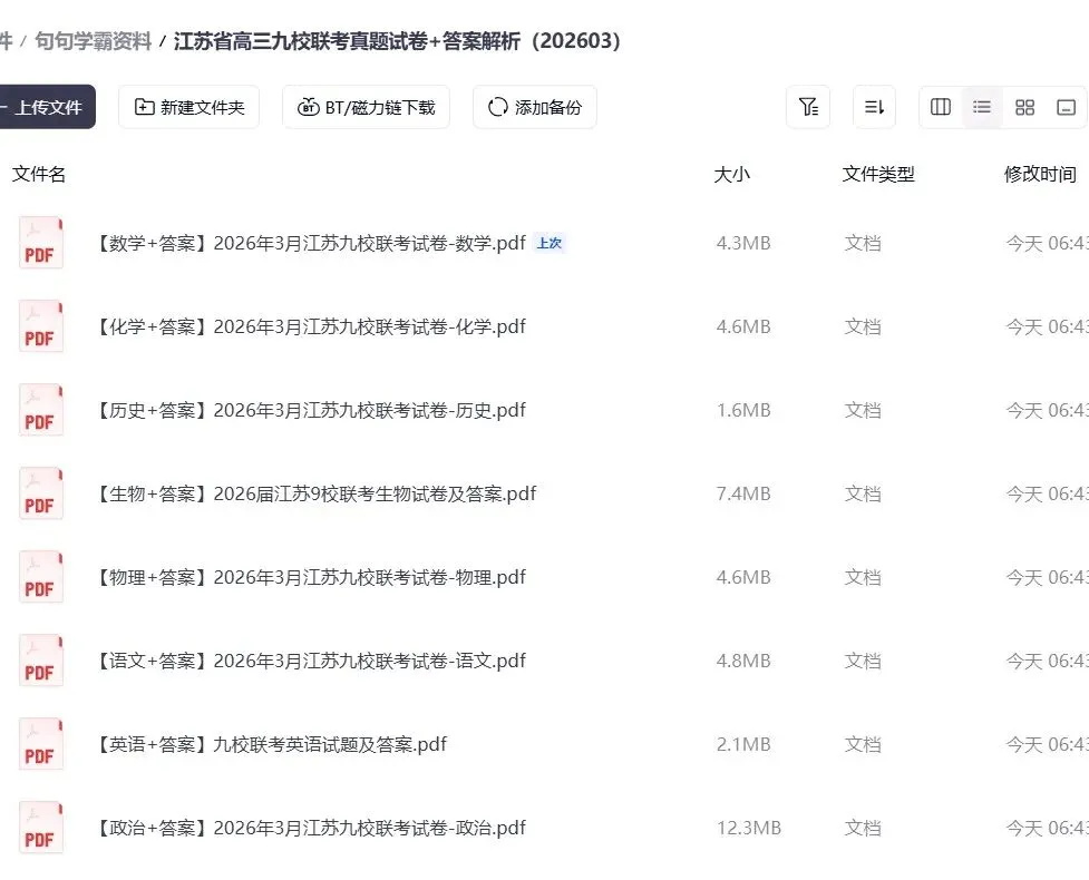 >【免费下载】江苏省高三九校联考真题试卷+答案解析(202603)