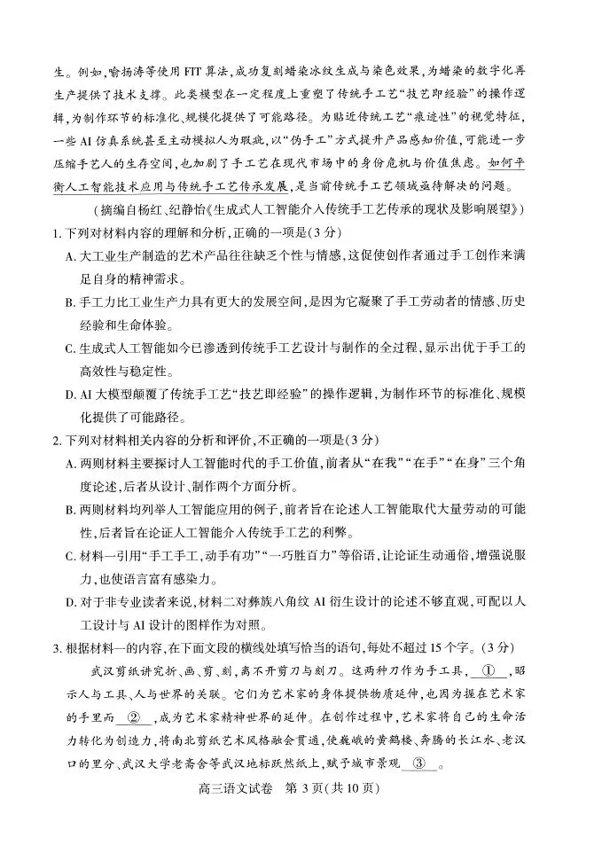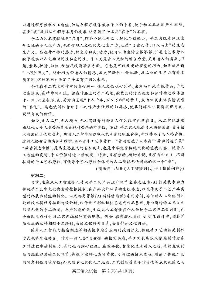 成都七中2026届高三语文二诊模拟试卷及答案(复制留言处百度网盘链接领取电子档及更多资料)