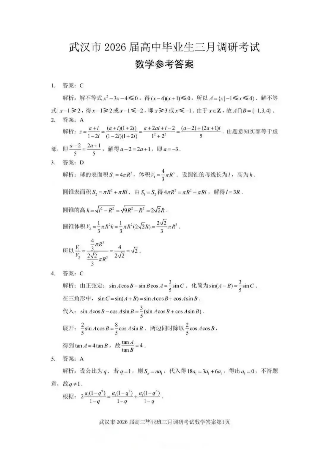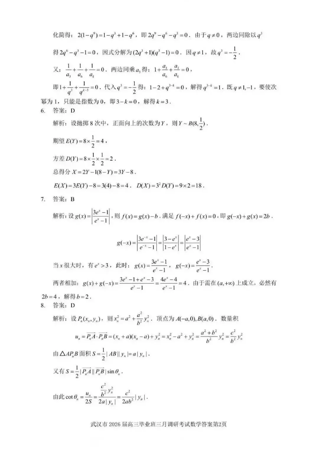 2026 武汉三调数学试卷分析+视频讲解|更新:数学/语文/物理/历史/英语、答案出炉!