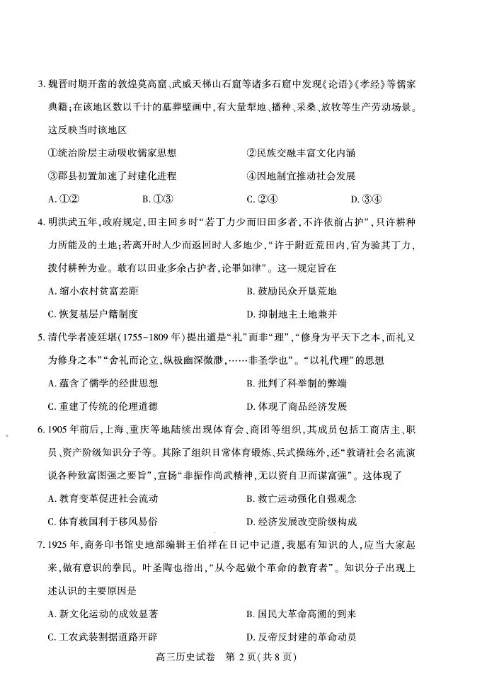 【试卷/高二下】2025-2026辽宁名校联盟高二下3月历史(含答案)可下载