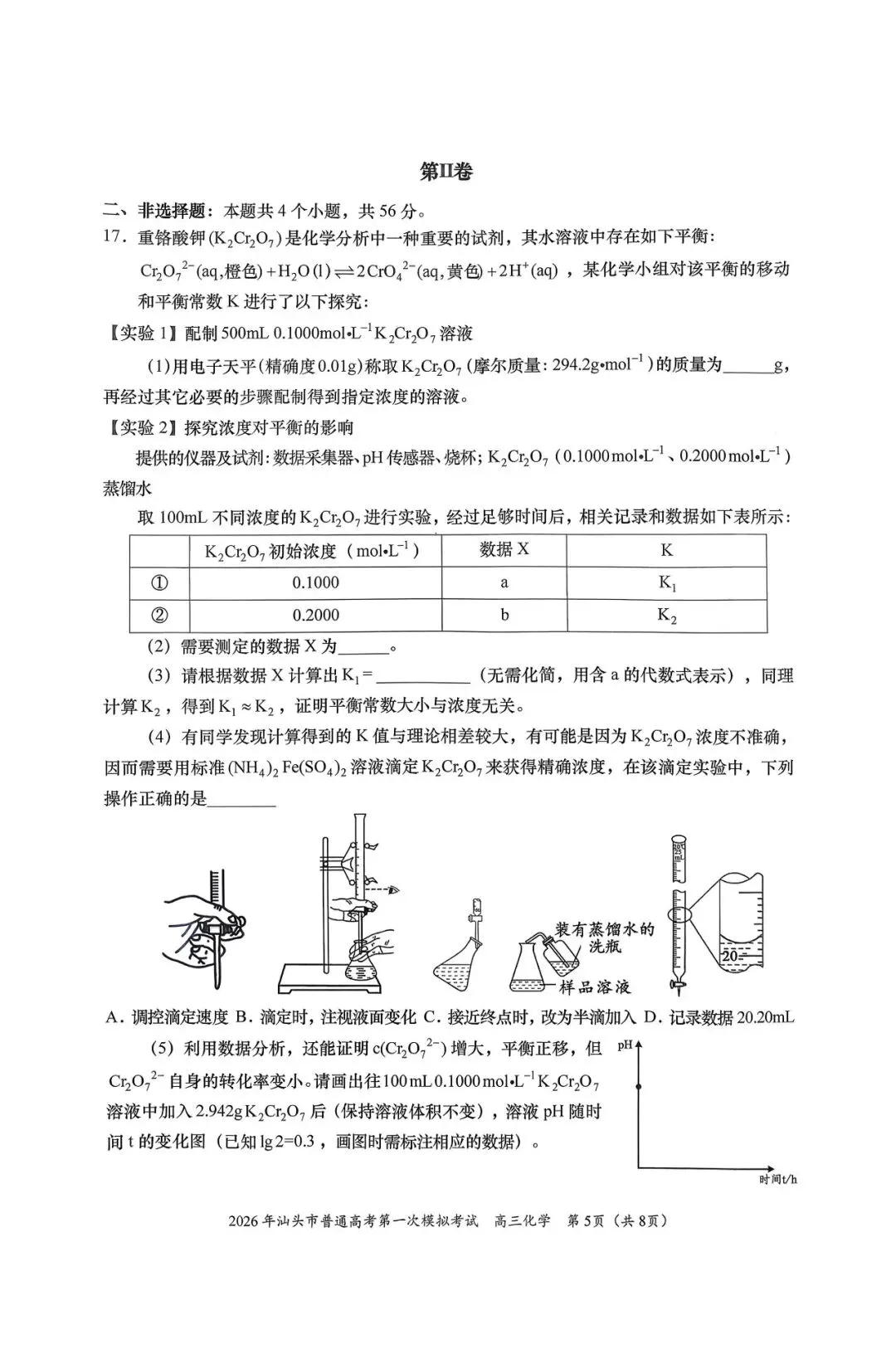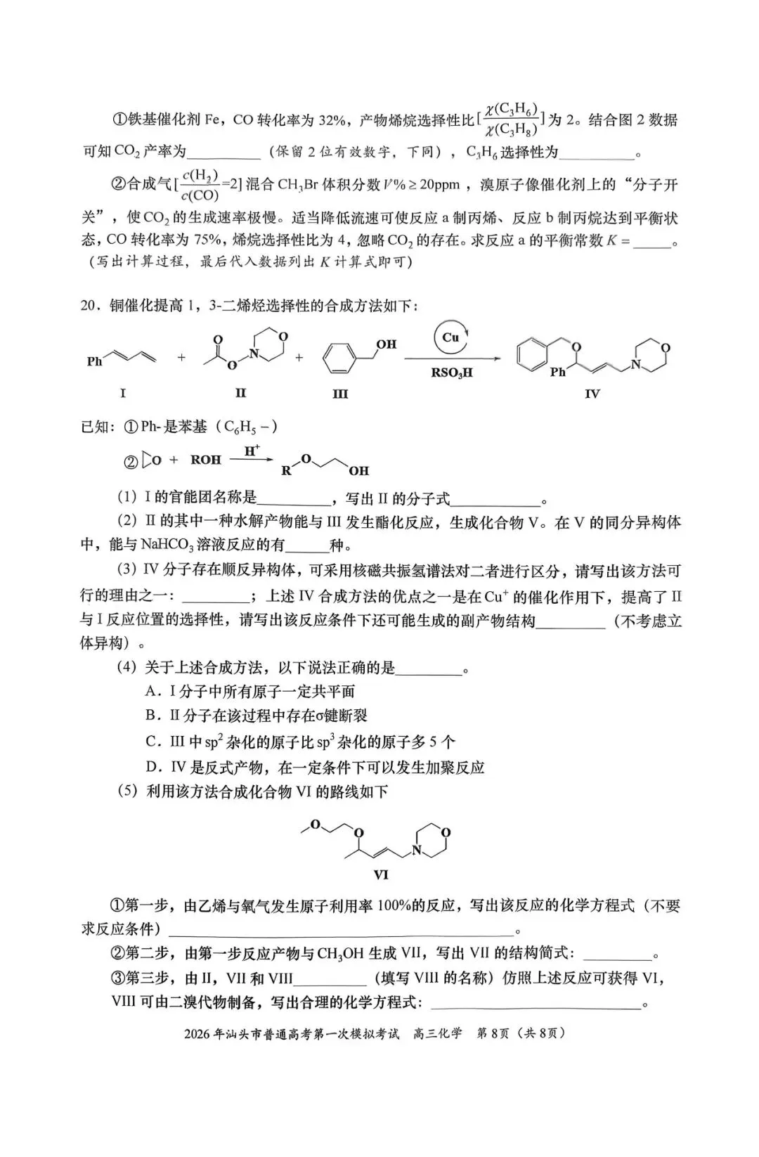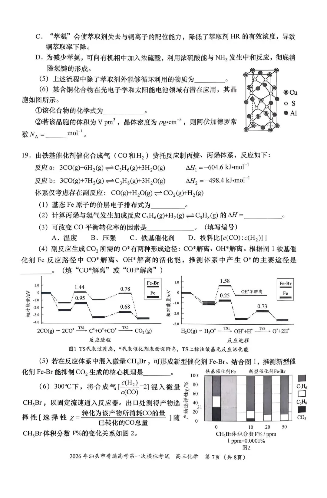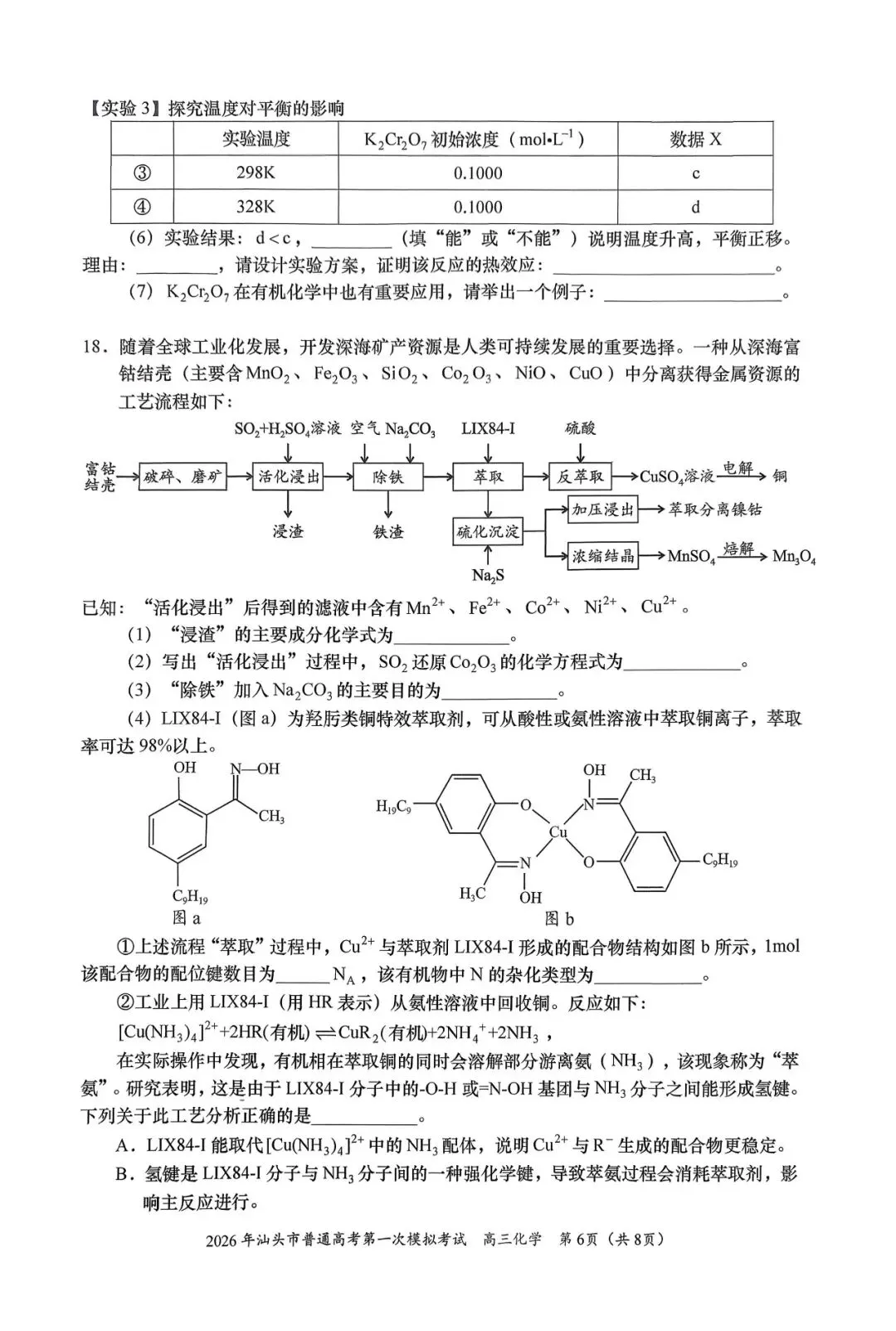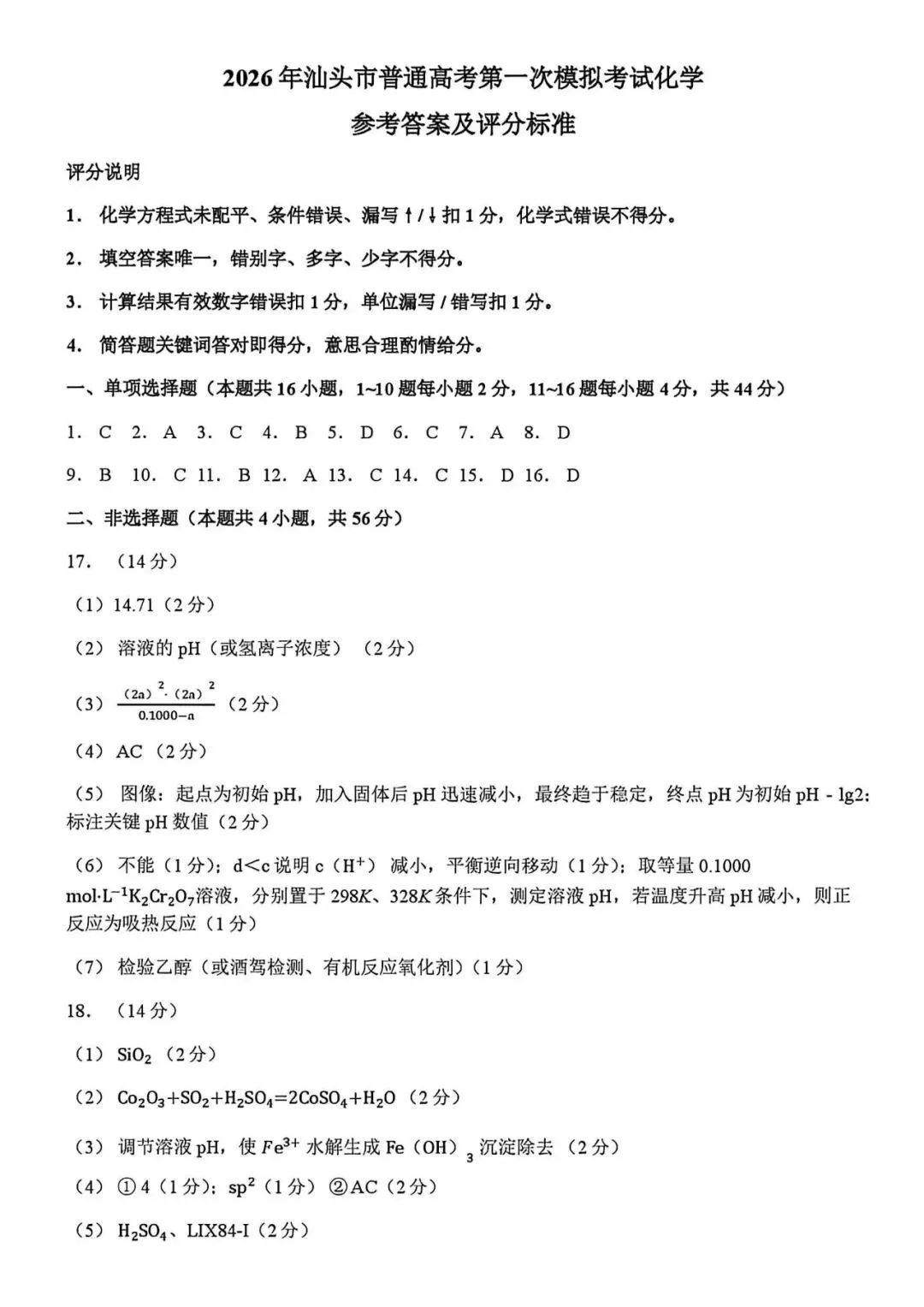 2026年汕头一模化学试卷及参考答案