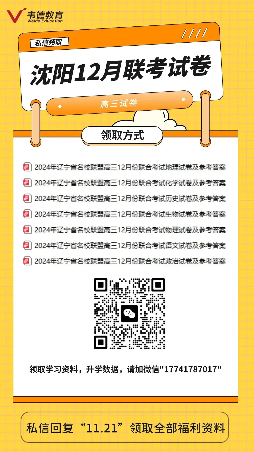 沈阳初高中试卷免费领取!