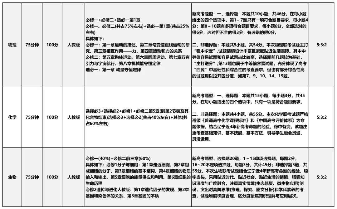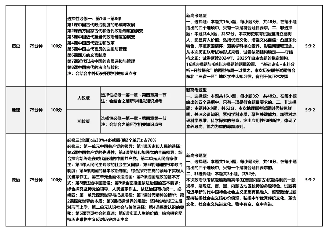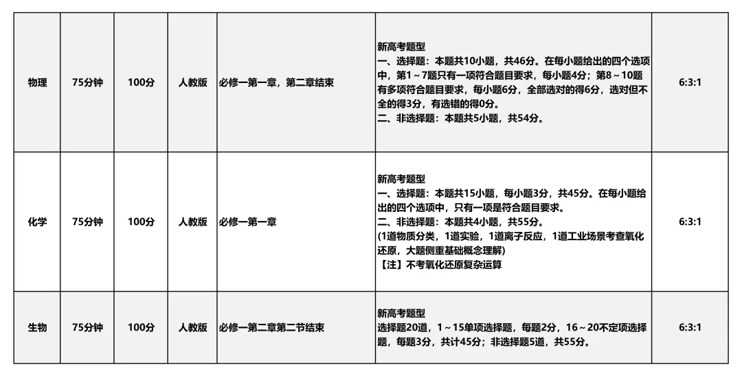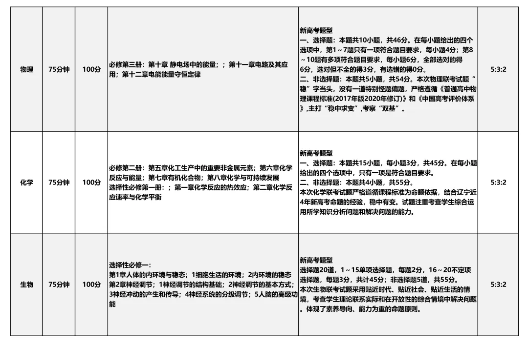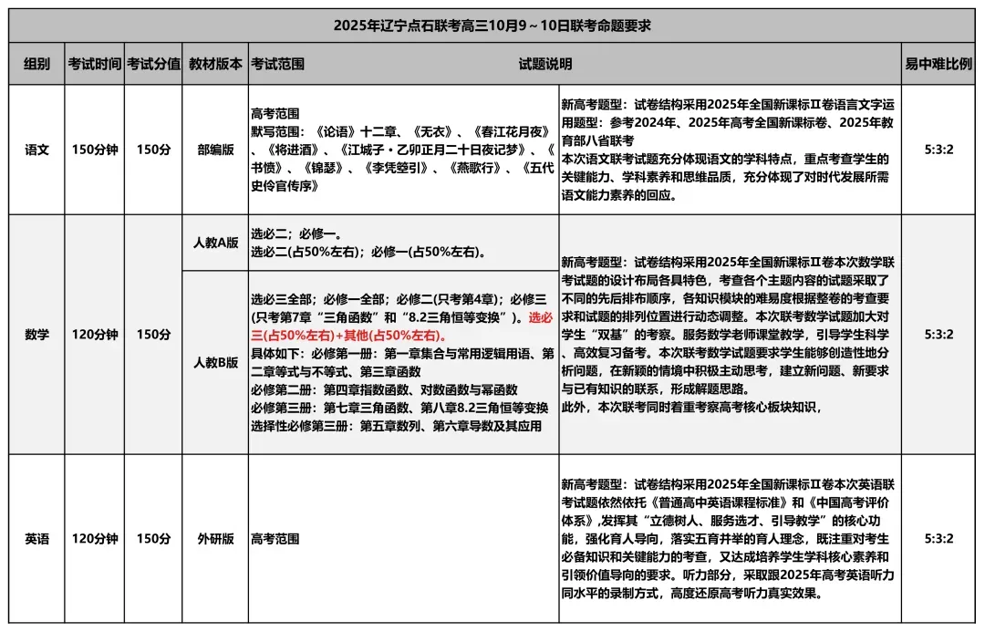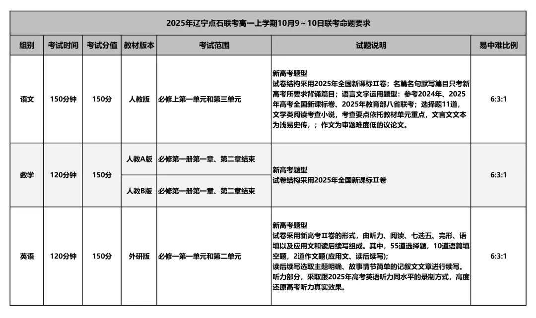 沈阳10月联考考试范围及试卷!
